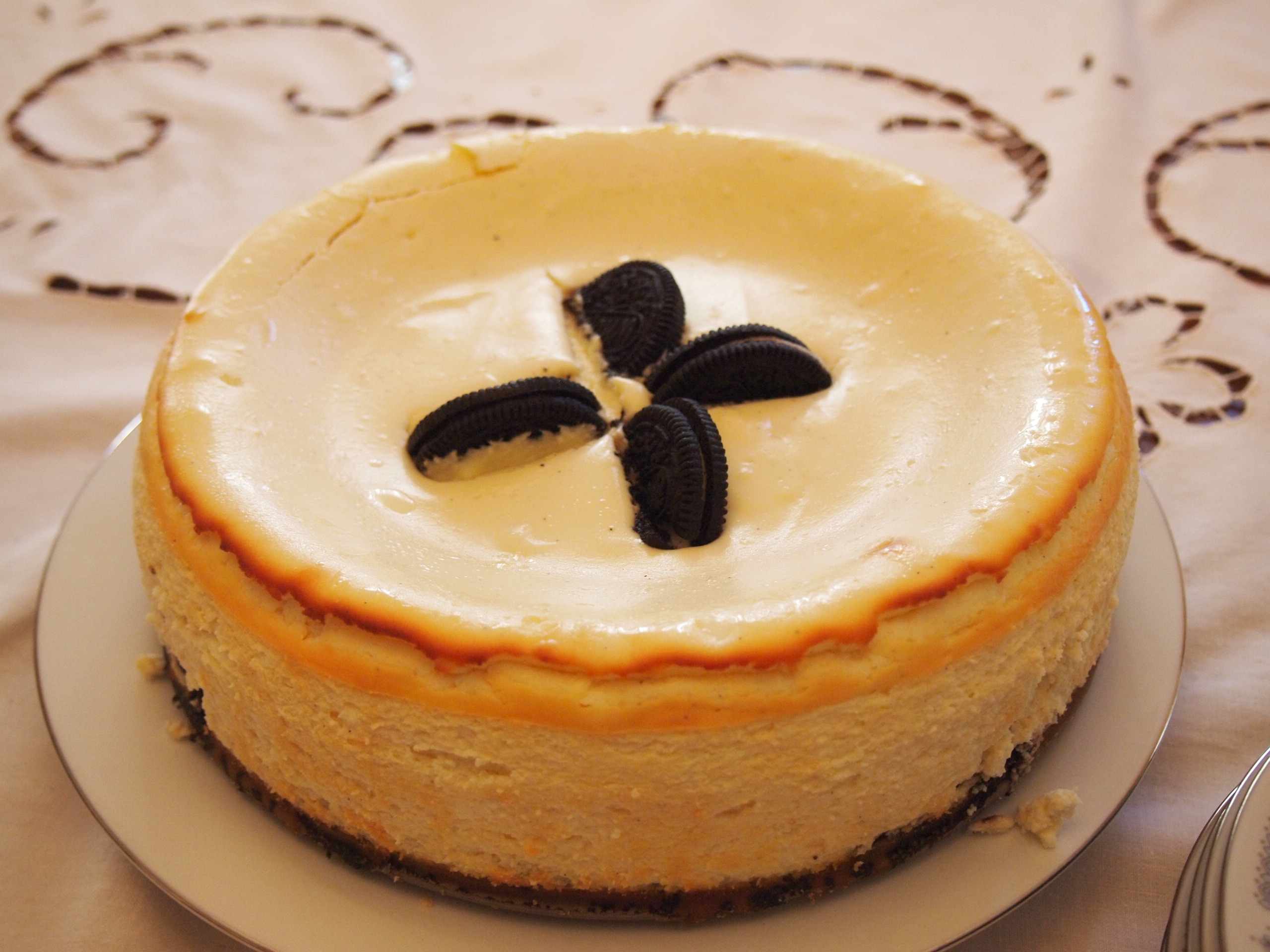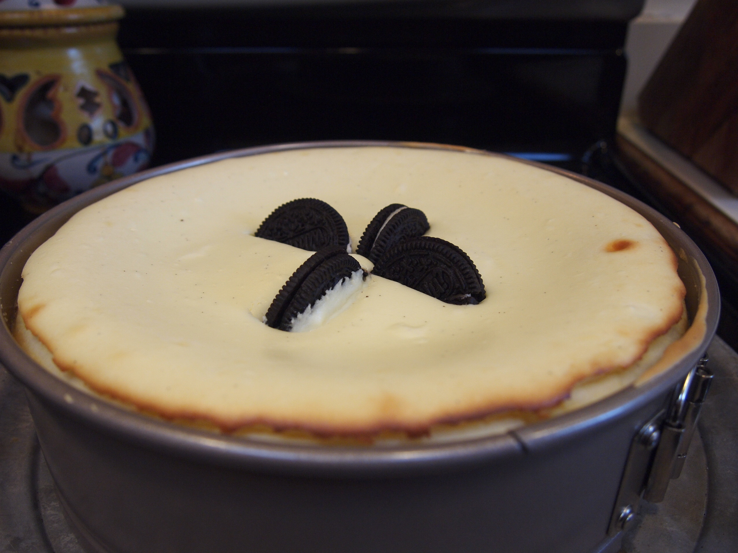 ** If you would like to decorate the top with the cookies: before baking, take four cookie halves and place on top-pressing them into the filling enough to be stable.