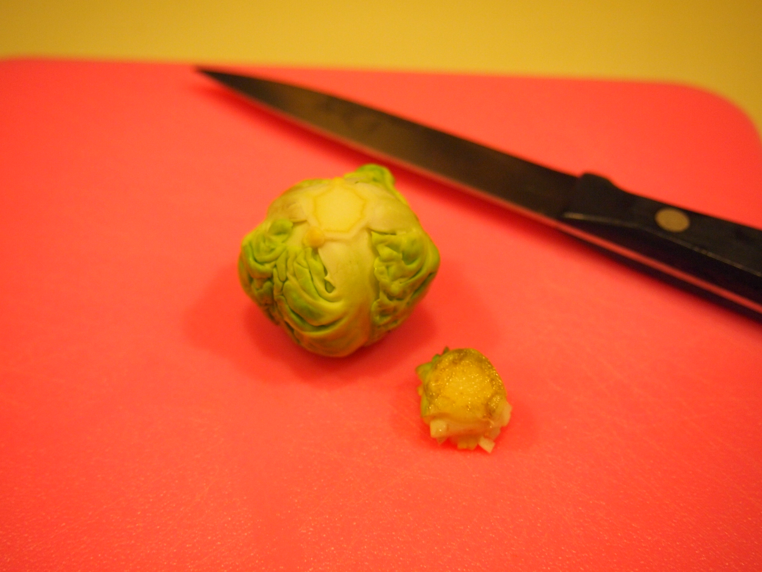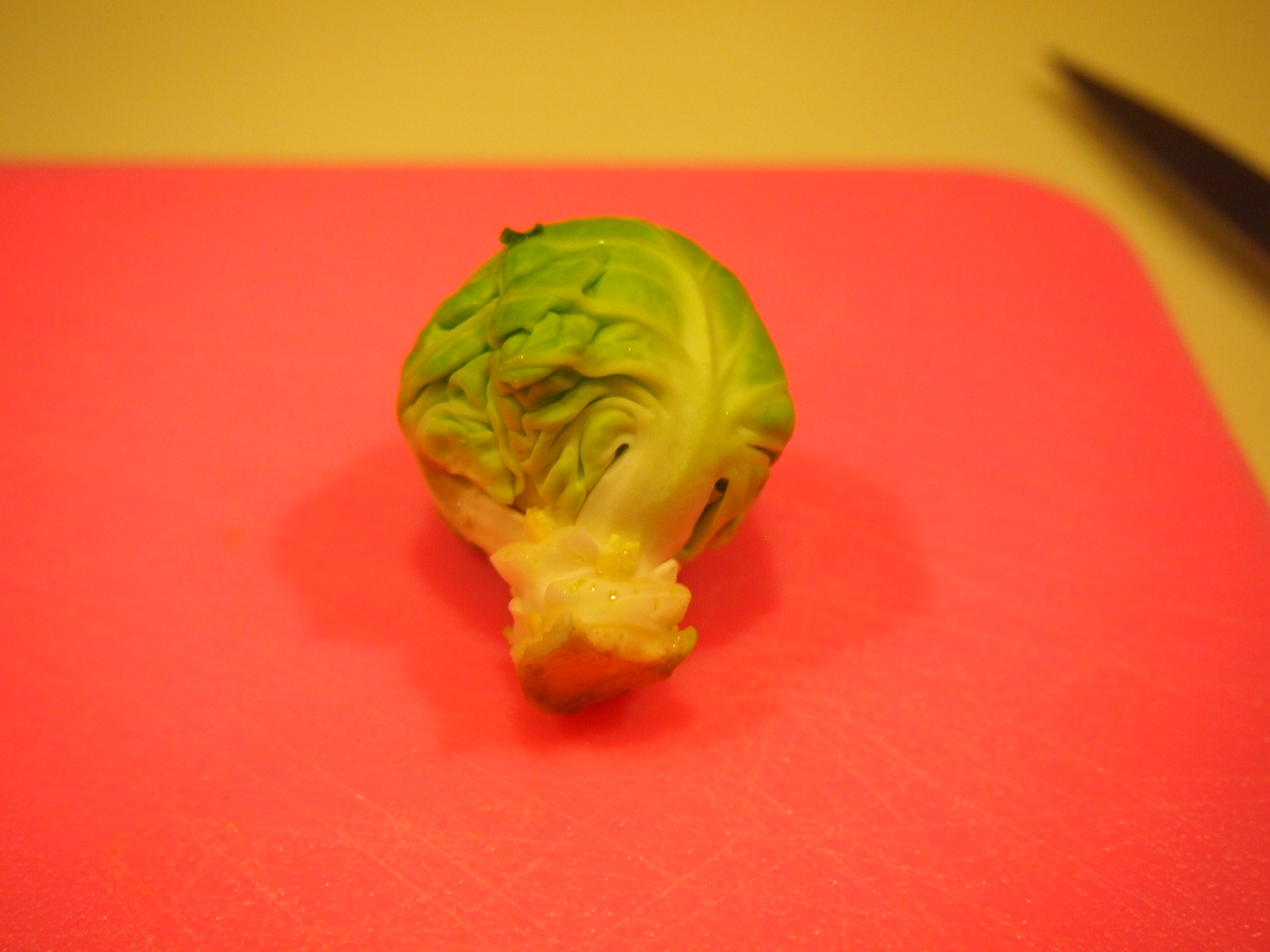 A washed brussels sprout. Isn’t he cute?