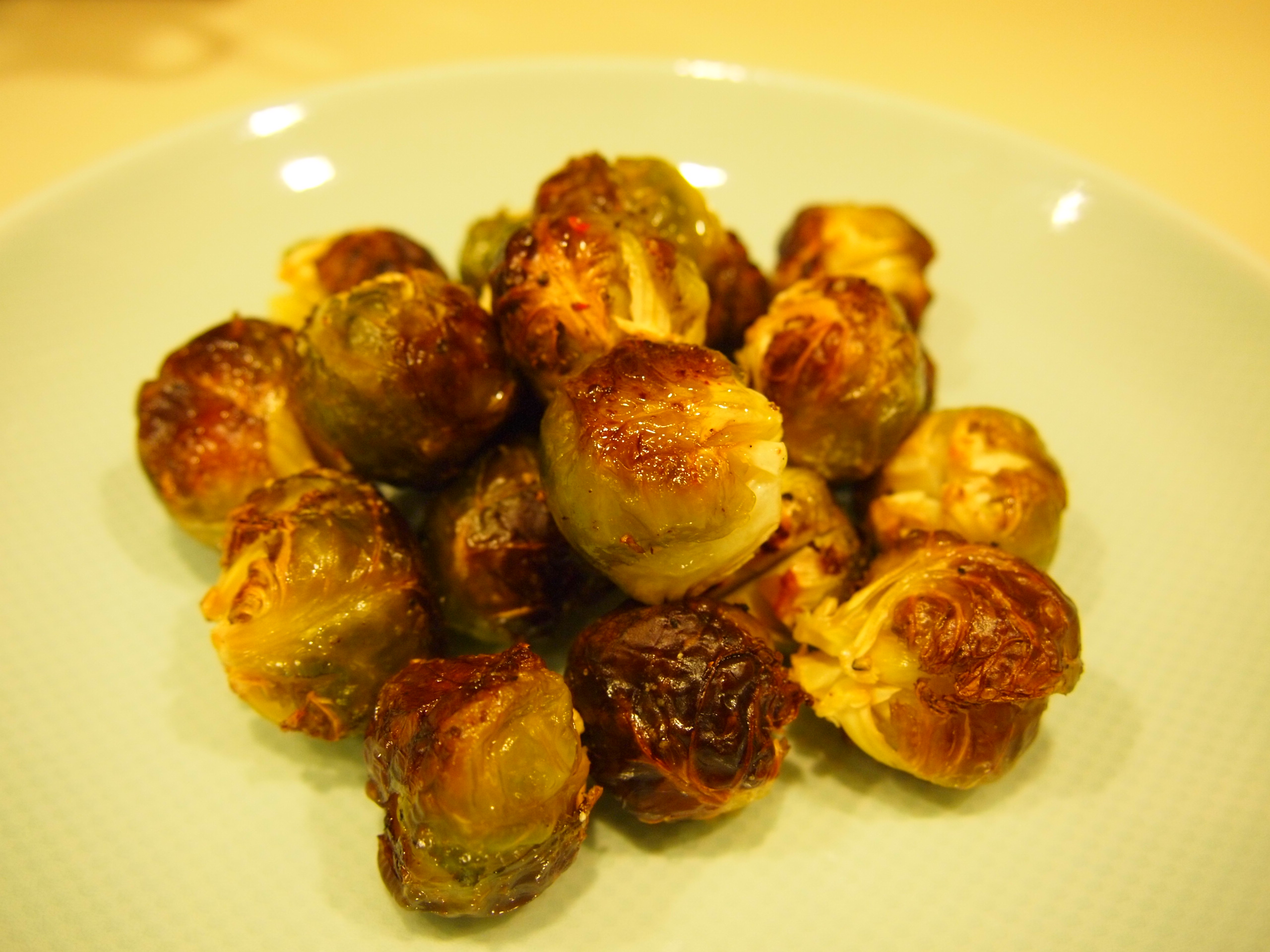 The finished dish! Roasted Brussels Sprout