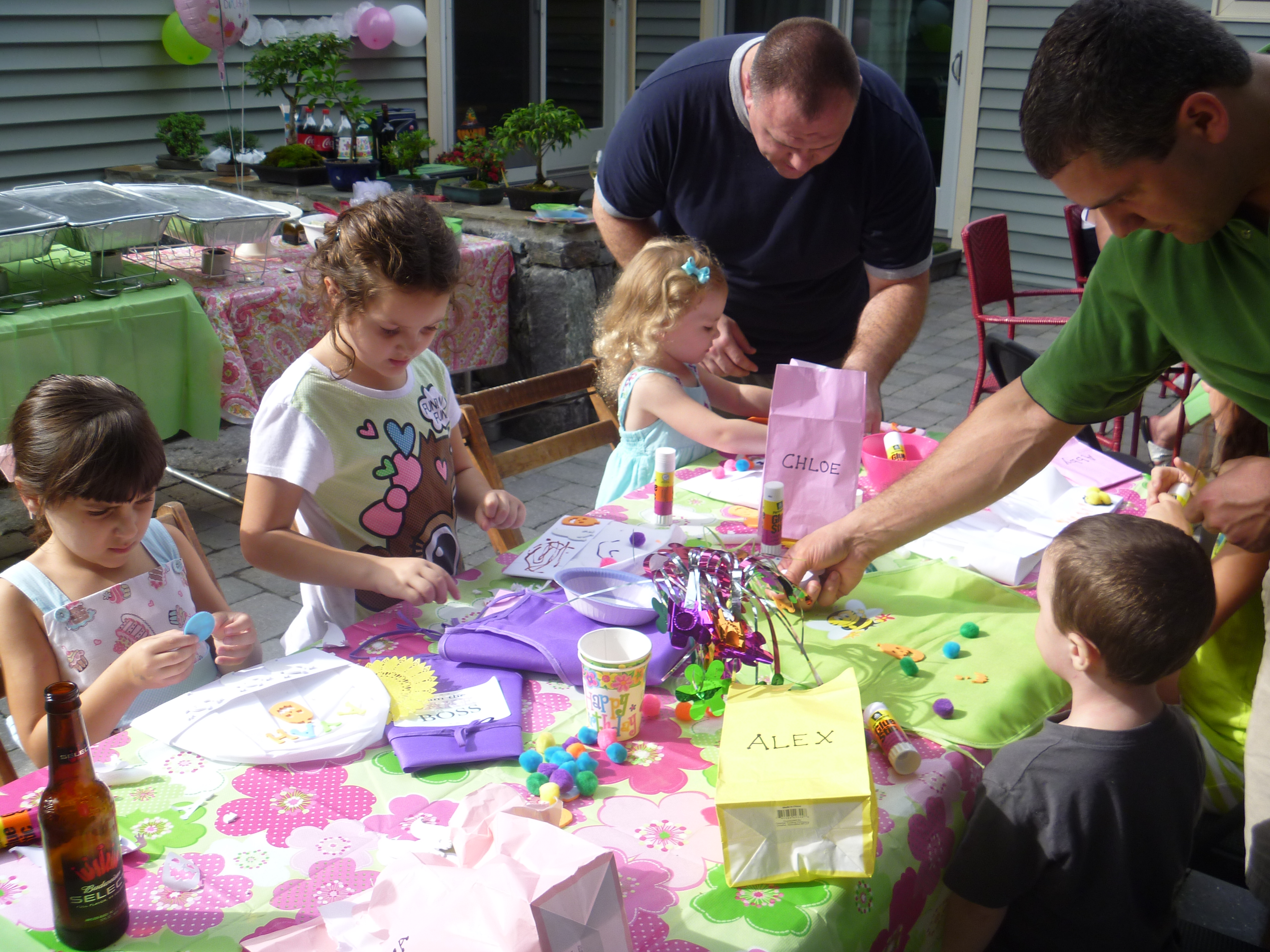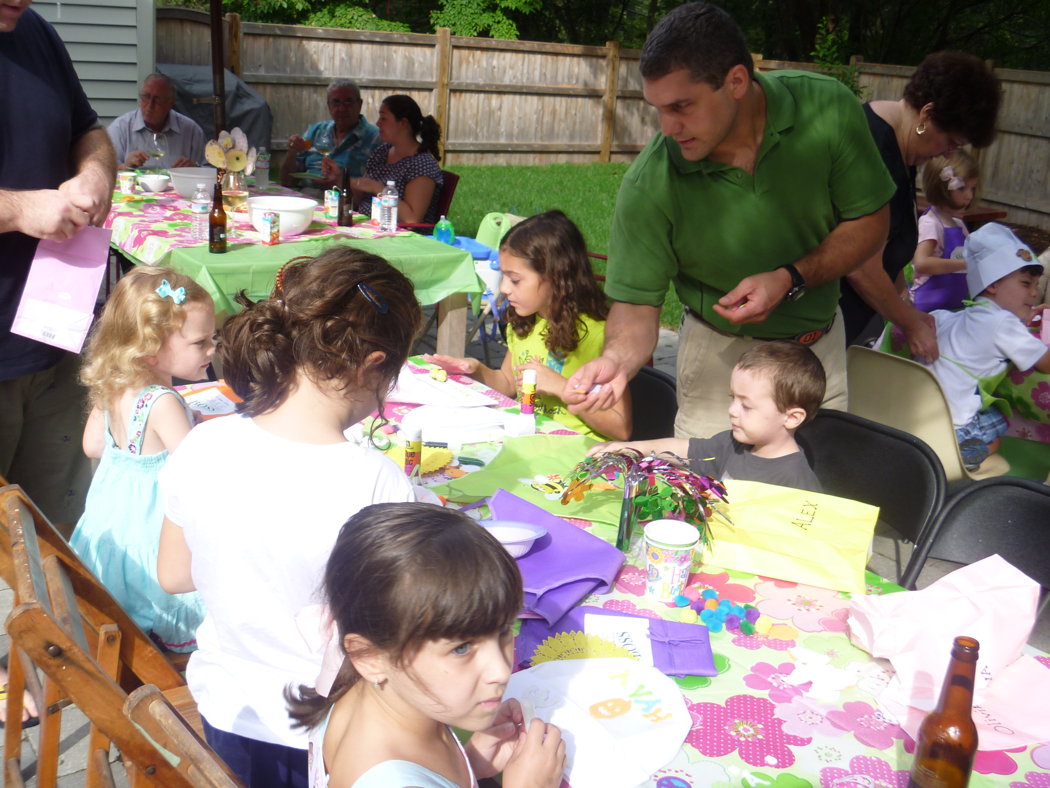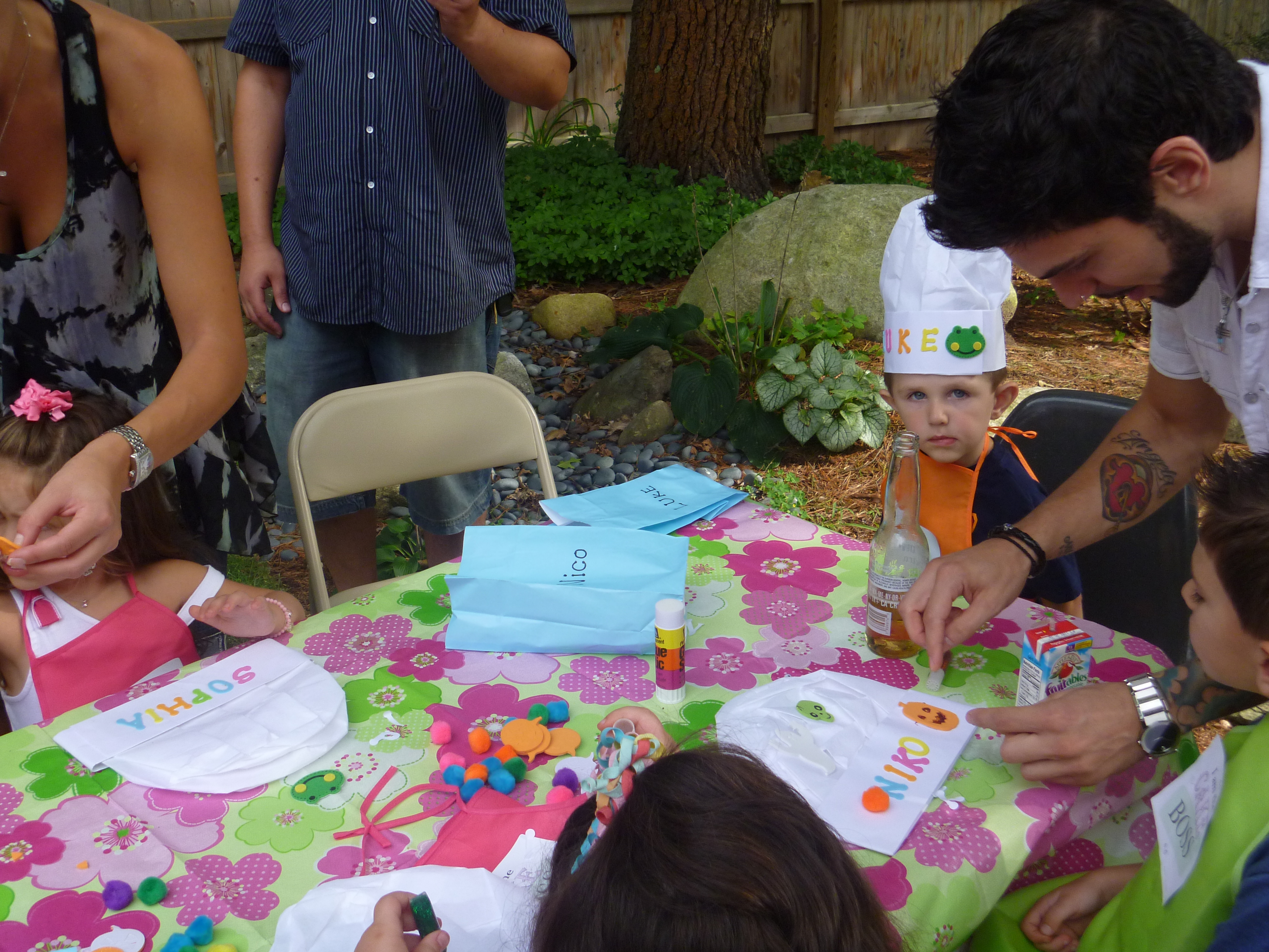 The crafts were great for all ages. This party had 15 children under the age of 6, and one child was 9! They all enjoyed making a mess and creating something special, and yummy.