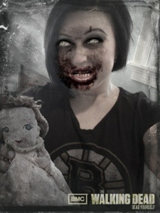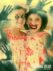 To keep entertained through my fog, I played on the DeadYourself app for a while. It’s an app where you take a portrait shot then add zombie accents to it. It is hilarious. Over the past few months I have become obsessed with The Walking Dead. Great show. The DeadyYourSelf app found its way to me a few weeks ago, and I only created a zombie of myself and my husband so far. Well, last night my older daughter asked to be made into a zombie. I don’t know why, since she is a scaredy cat. She has seen the two I made of my husband and I and can’t even look at them. So. I didn’t do it for her. I really don’t need her getting out of bed all hours of the night with zombiemares! But it popped into my daydreamy mind this afternoon to make her one. So, off I went disfiguring her. Then once I was done, I zombified my other daughter… Then thought, ‘heck, let me get the rest of my loved ones done!’. And the fog got thicker..I went off the deep end, turning everything into zombies.