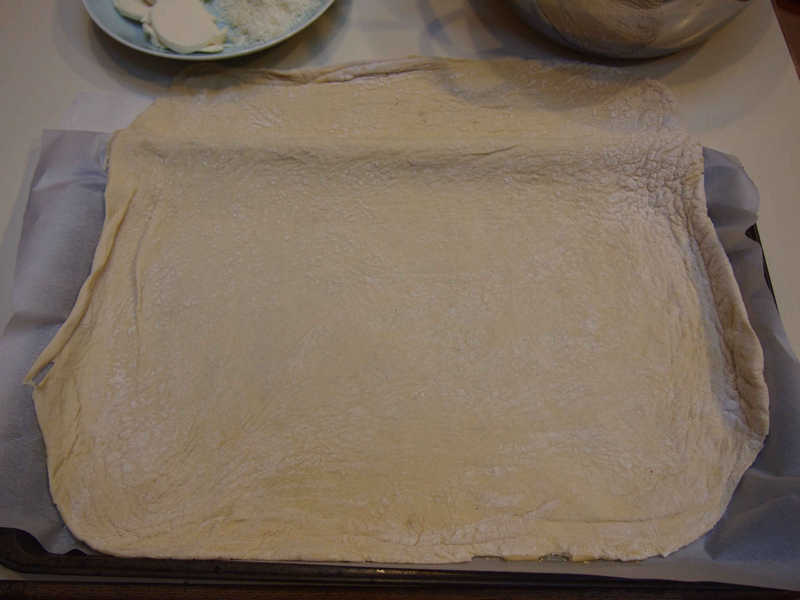 Pizza dough, stretched (for this recipe I used restaurant bought)