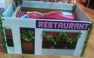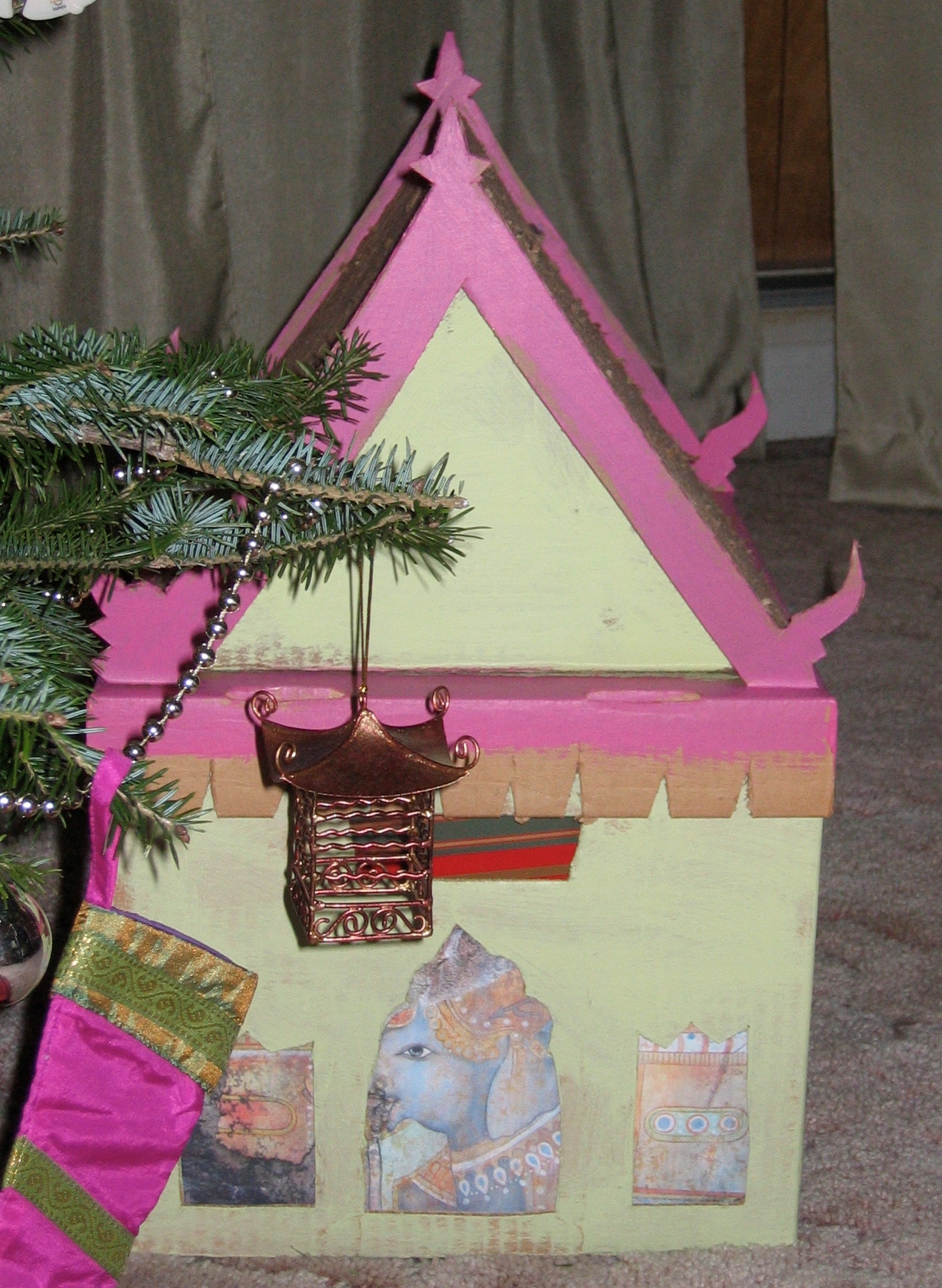 He has made me an African Safari Christmas; where he cut out African animals out of card stock then placed them in a line along the edge of dark wrapped gifts- like they were in migration. A Retro Kitchen Holiday was this year, and everything was wrapped in silver with real cool rivet cut outs and vintage lettering. One that I coined as the Houdini Christmas. That was actually our very first Christmas together, but we weren’t married then. I was a lucky 18yr old girl. He came to my house with a dozen giant gifts all sprayed in silver. Each gift was fashioned with different locks. I had to figure out what keys went to what gift after finding the keys in the following gift.