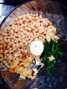 Place the beans, roasted garlic, paprika and parsley into a food processor.