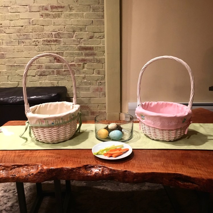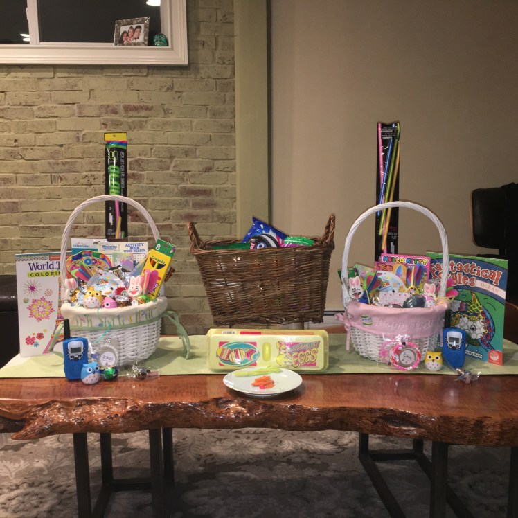 Easter Sunday was a wonderful day for my family and I. Woke up, at a decent time, to the girls shouting excitedly over their full baskets…and an extra basket of more bunny related snacks for our trip!