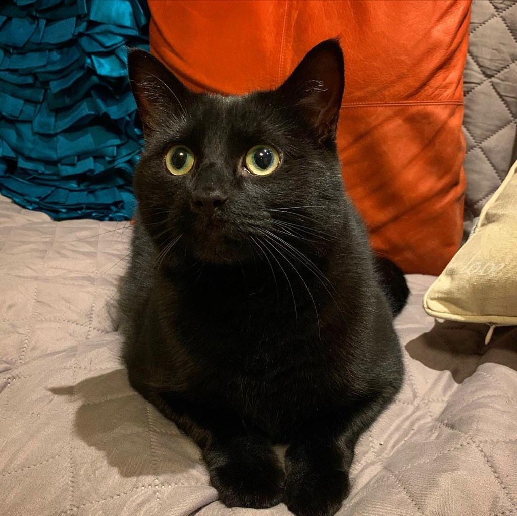 After a couple of months searching for our cat match, we found him. Jack is a two year old sleek, black furred, green-eyed handsome boy. He is sweet, lovable and super spooky in all black. Jack’s former name was Rye, but when we brought him home his name just didn’t feel right, so we renamed him Jack, aka Jack Skellington. He is so handsome!