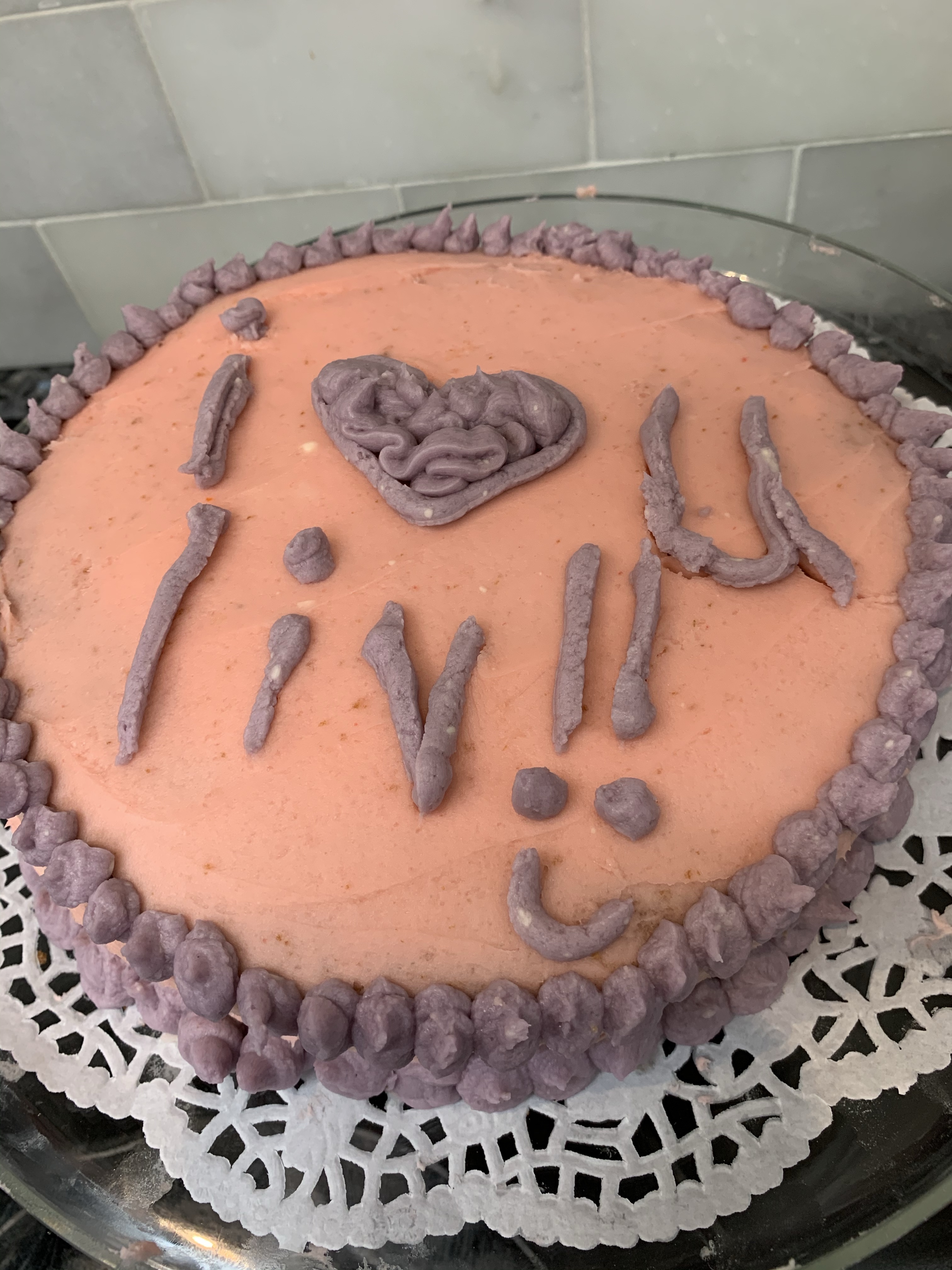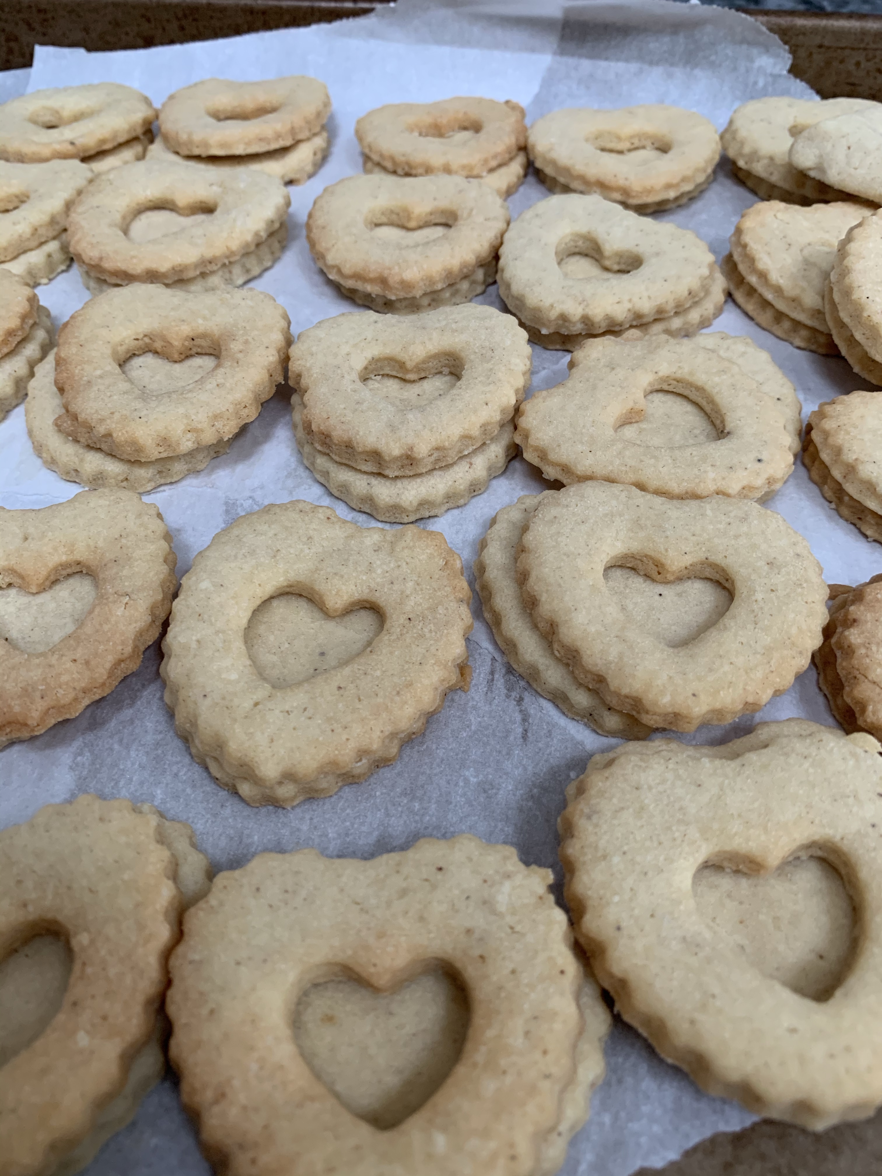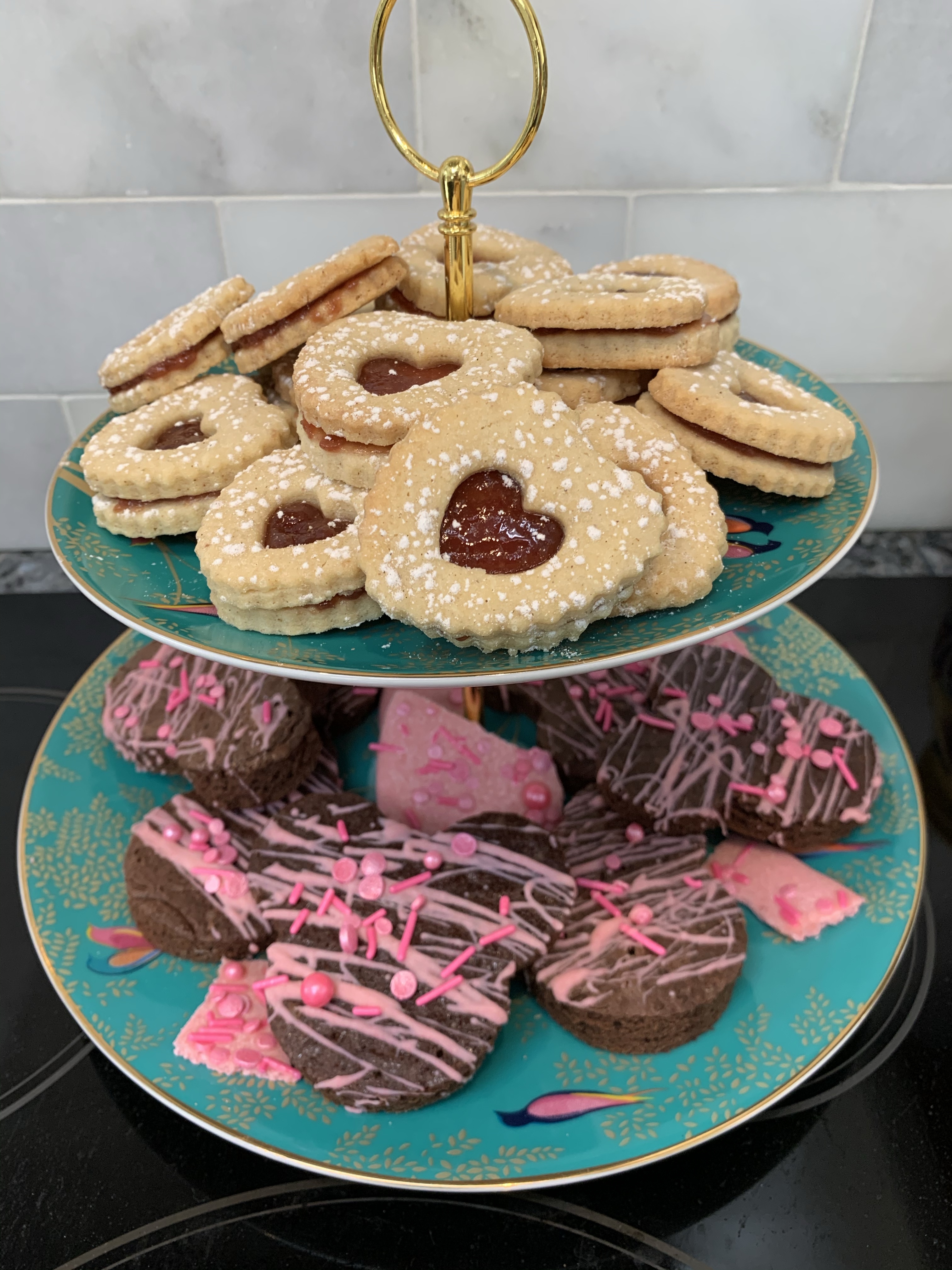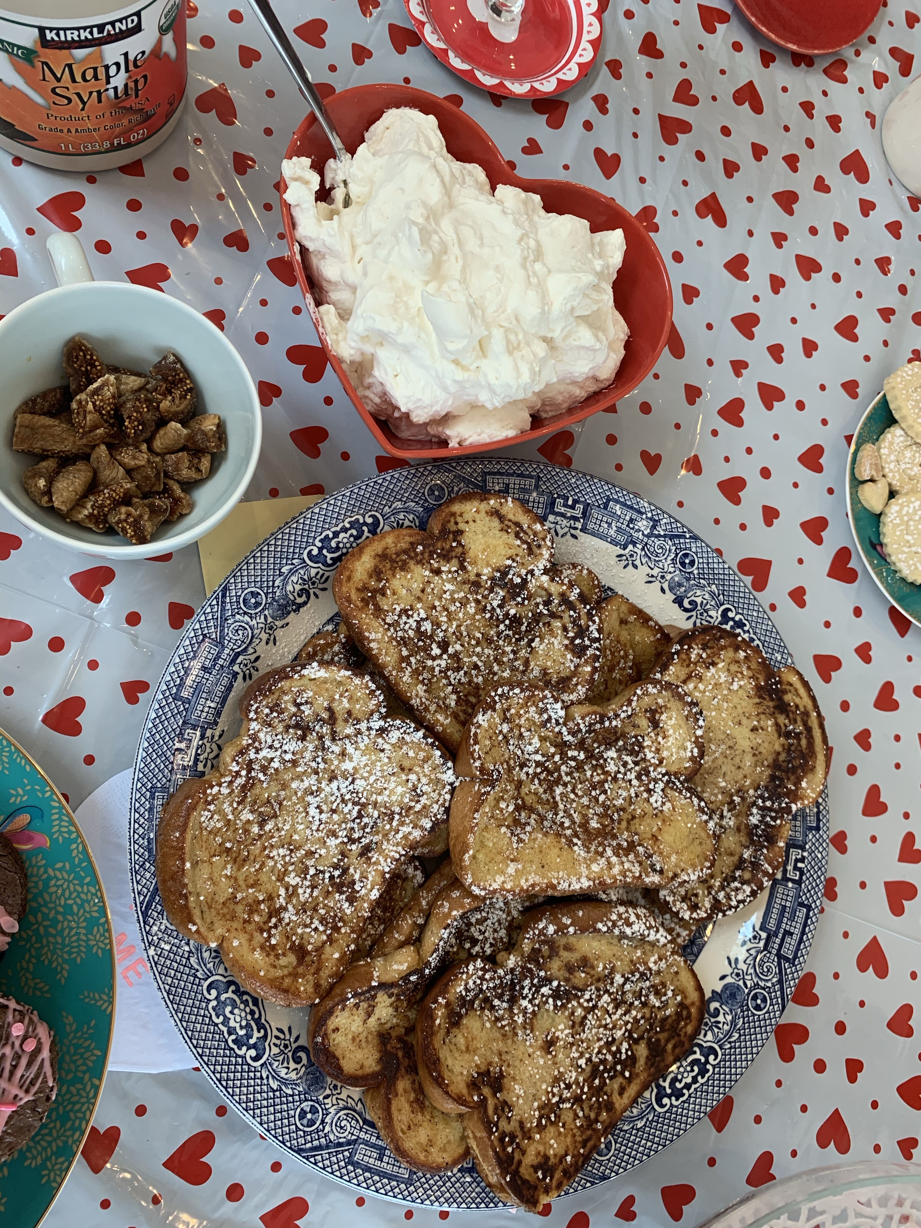 We decided to have a sugary brunch rather than order dinner out, with each one of us making something to eat; which was a great idea. Our oldest daughter made her sister a cake, though it was for all of us. It was a funfetti cake with homemade buttercream frosting. Our youngest made from scratch Mickey Mouse head shaped brownies with white chocolate drizzle. I made Linzer cookies, which are my favorite, and French toast. My husband made whipped cream, honey stewed figs and bacon. Needless to say we were sugar high as kites!