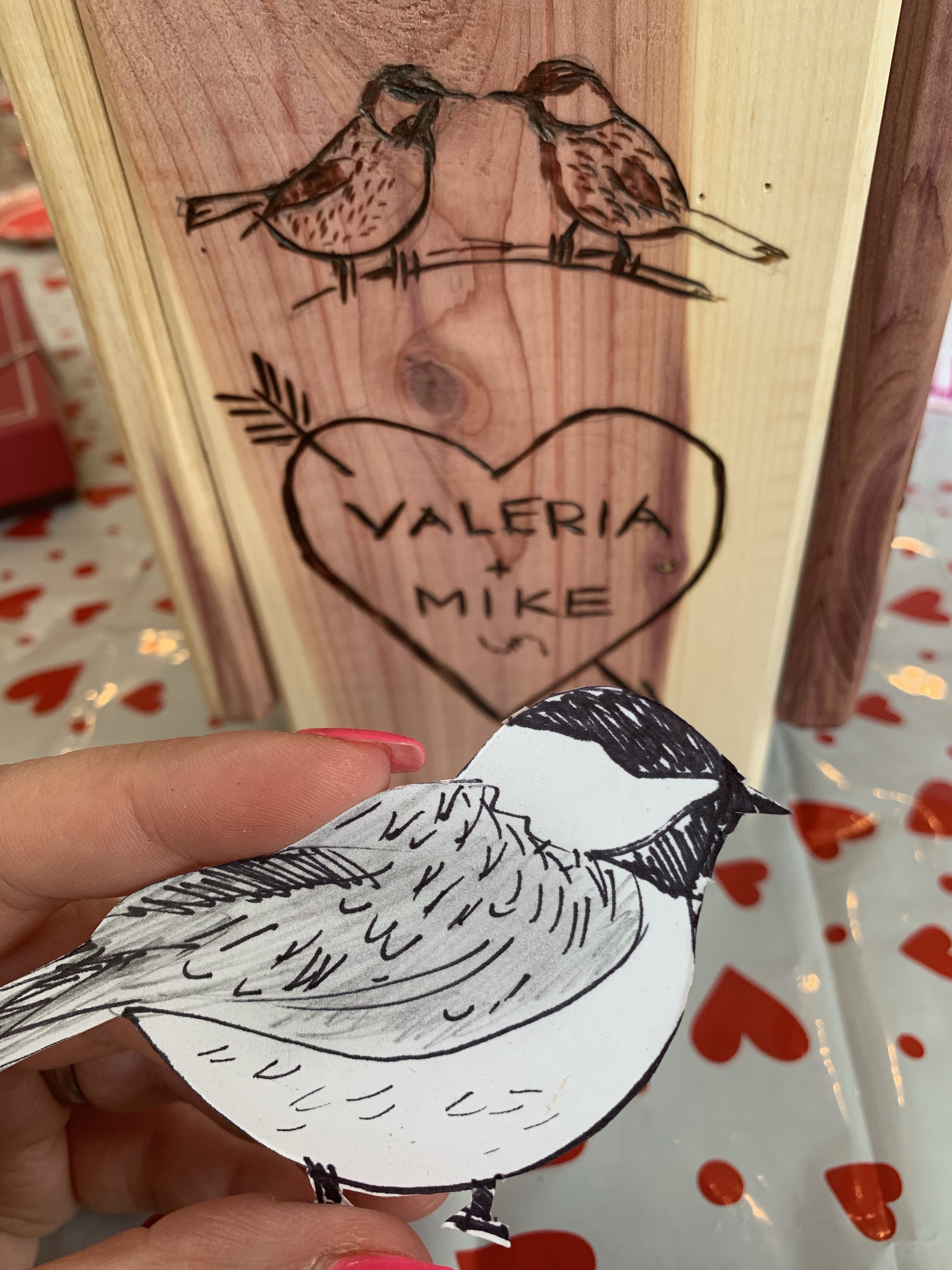 Super cute, right? I cleaned it all up since this pic was taken, and pit a bow on it. He loved it, because it’s referencing Back to the Future and it’s us. And cuz I made it. He would like it framed so he can put it in his office. (Yeee). So sweet!