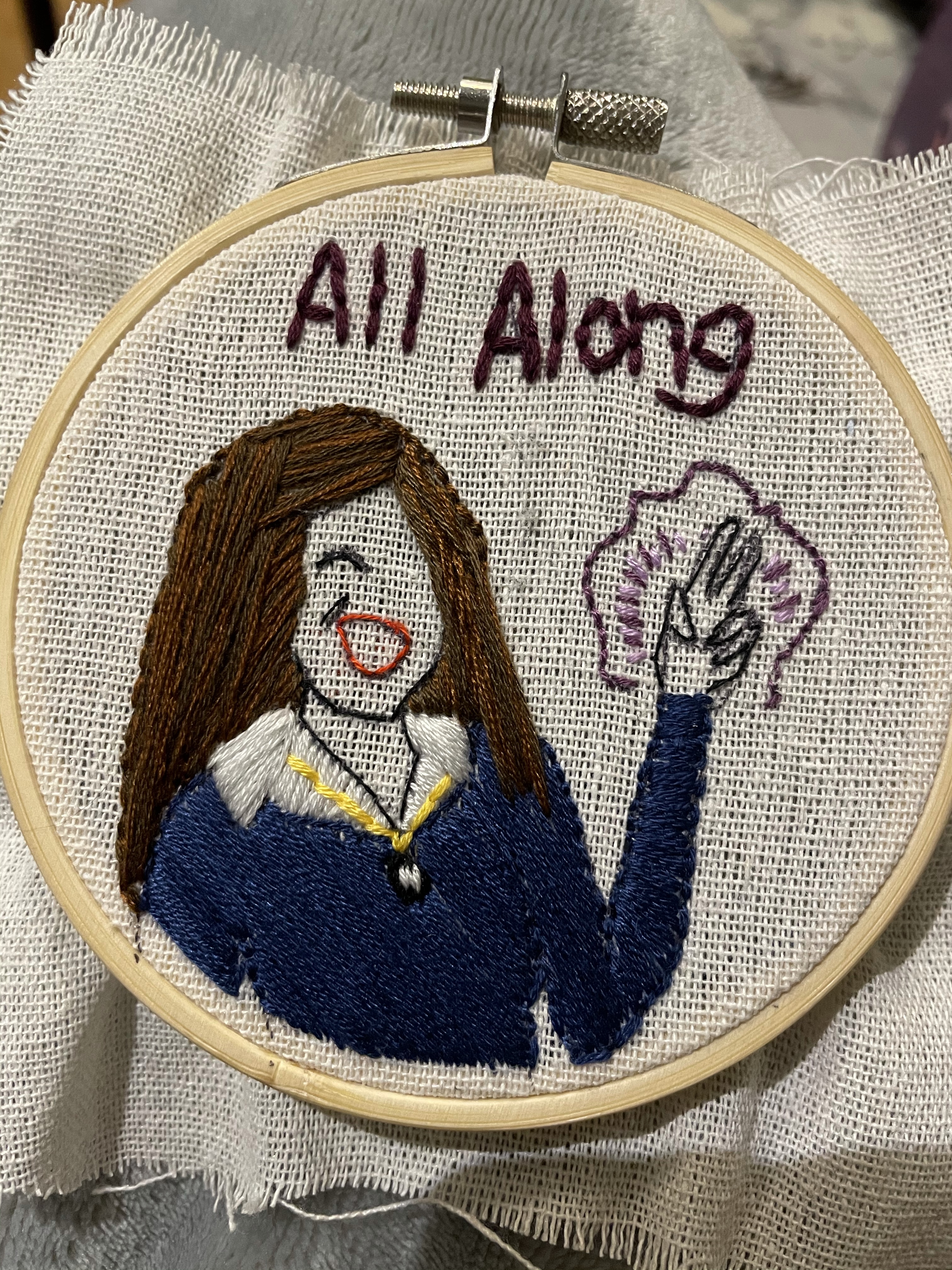 I tried making Agatha the next day. Ugh ug u, I just couldn’t focus and every draft I drew and stitched I threw out midway through. What was happening to me? Idk. I ended up making her four times, in different styles, then on the last one I just decided to finish it and let go. I know it looks nothing like the character, and it’s oddly in an Archie comic style, but I just had to push through to finish it. I felt so defeated that afternoon. I honestly don’t know why. It sucked though because I felt so out of sorts trying to make something that Tuesday.