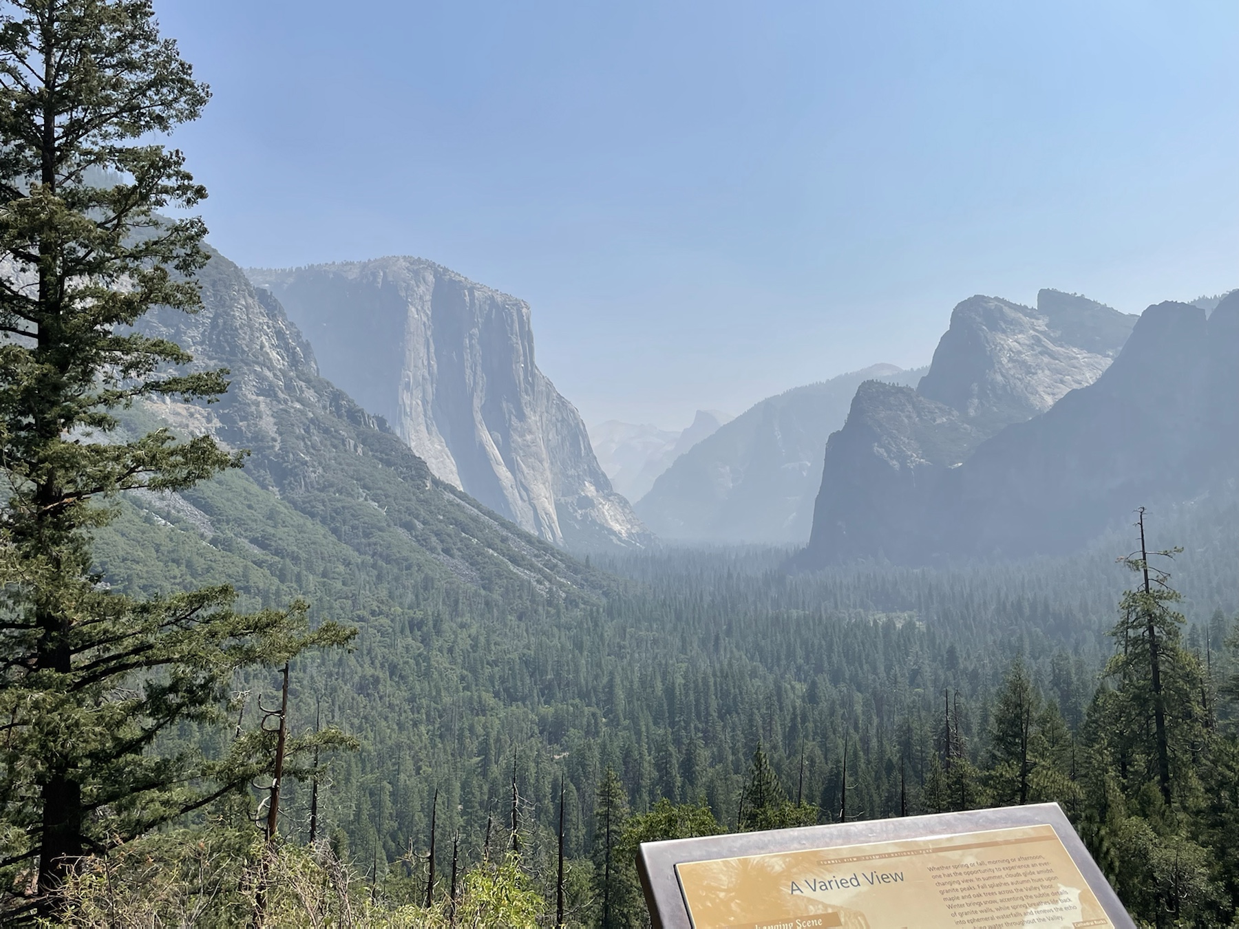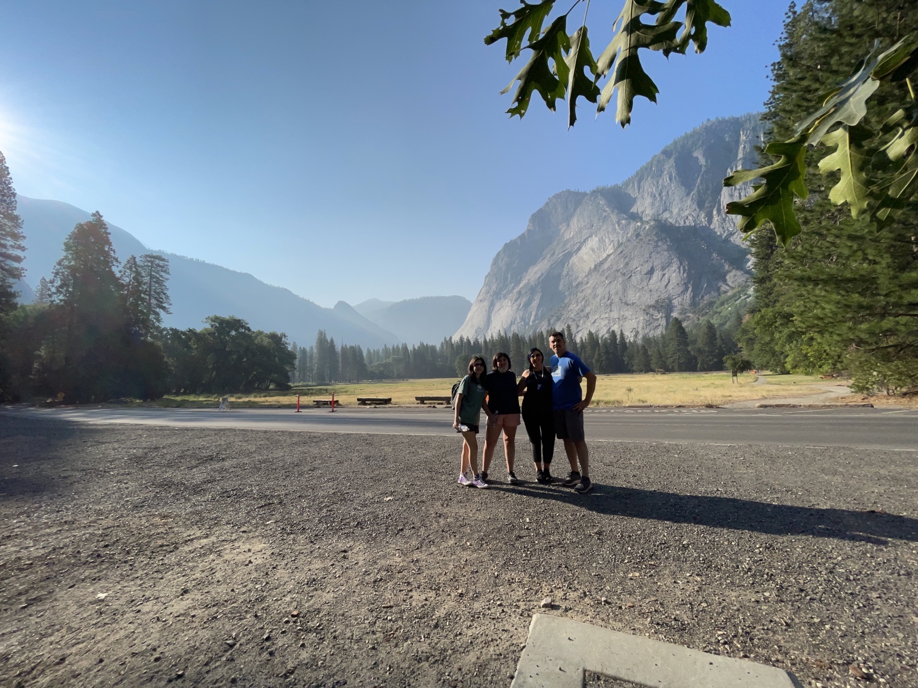 From there we took a walk to the hotel nearby, and then from the hotel we trekked to the Yosemite Village. We went around there for a really quick visit then headed back to our rooms to grab our luggage, and breakfast there. We tried making a drive up Glacier Point after we ate. We made it there but the road was having work done and the traffic impeded on our timeline of the day ahead. So we opted to drive up to a lookout point halfway up the mountain.