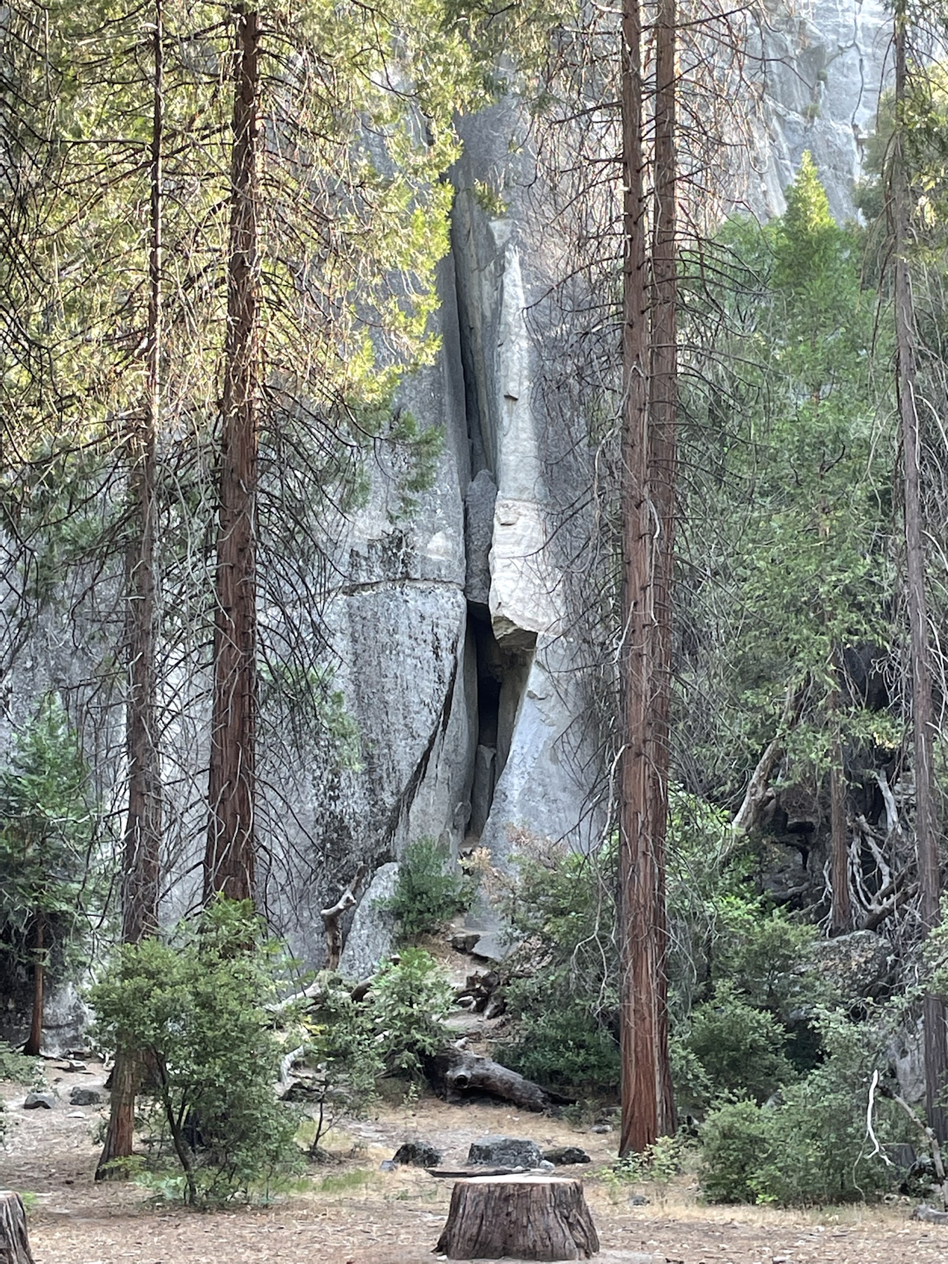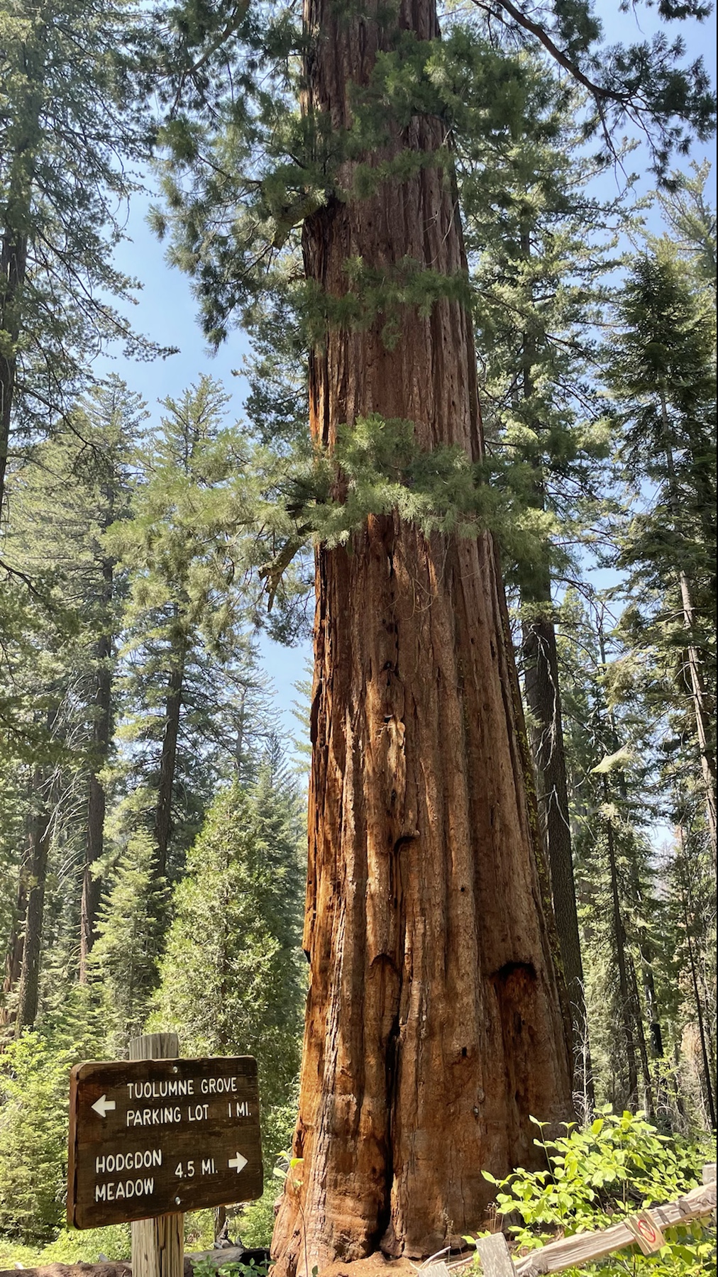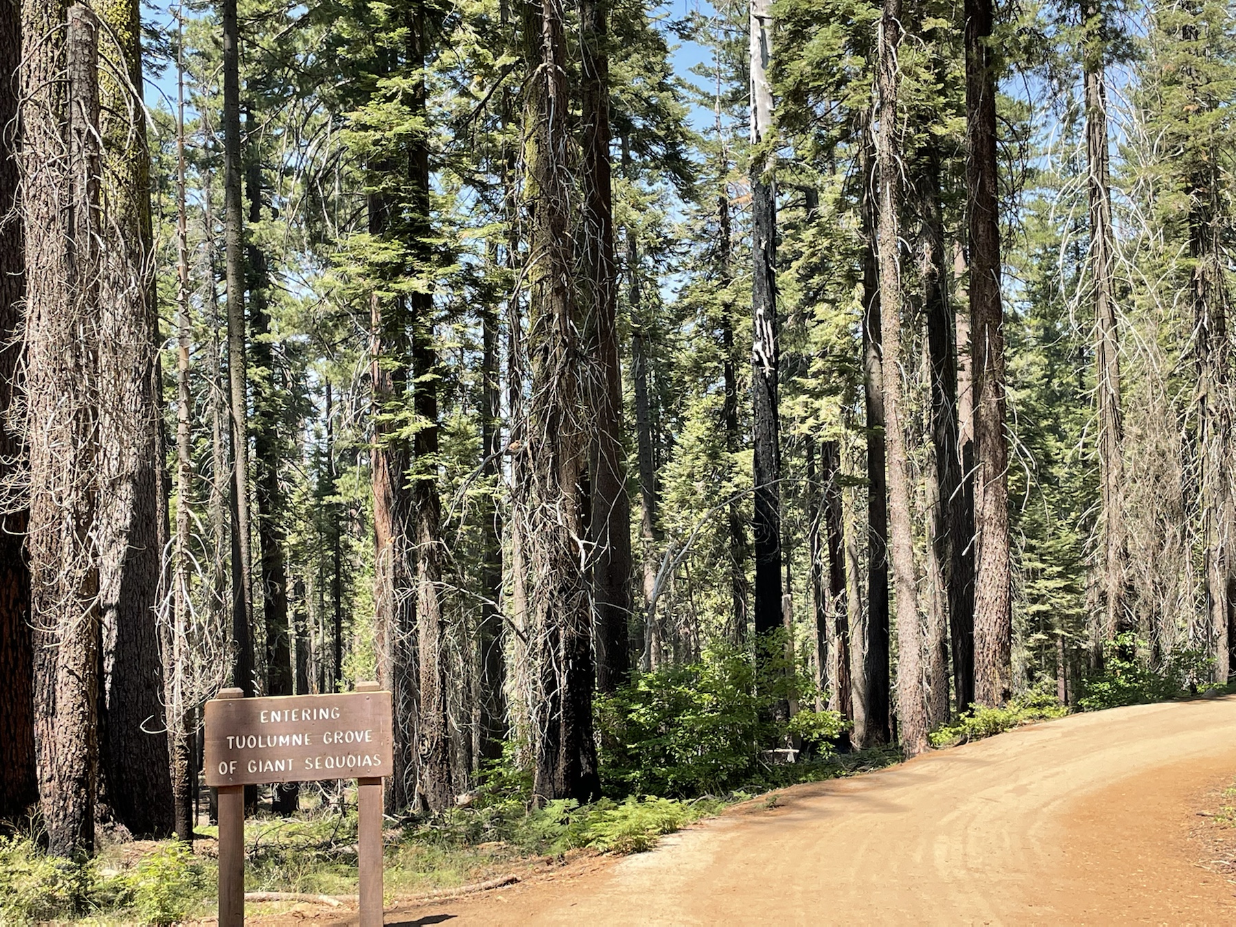The Tuolumne Grove is about a one mile trek downhill, about 500 feet of elevation loss. Keep that in mind while walking down. You’ll need water and cool clothing because the heat sneaks up on you down below. The walk down is divine, though; the views of nature and their critters is not to be missed. The sequoias though there are not many, they are worth the hike to see.. even if there is a hike back up that hill to follow. What I am saying is … I had a hard time making it back up with the ease of the hike down the hill. So, just a heads up for those of us not in the best of shape. I made it, but boy did I have to work for it!!