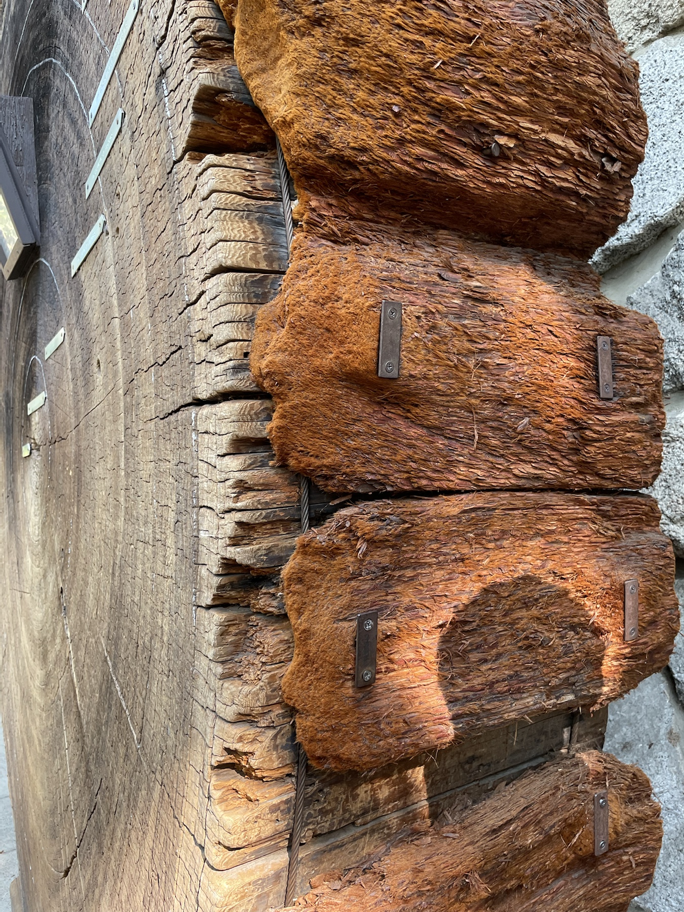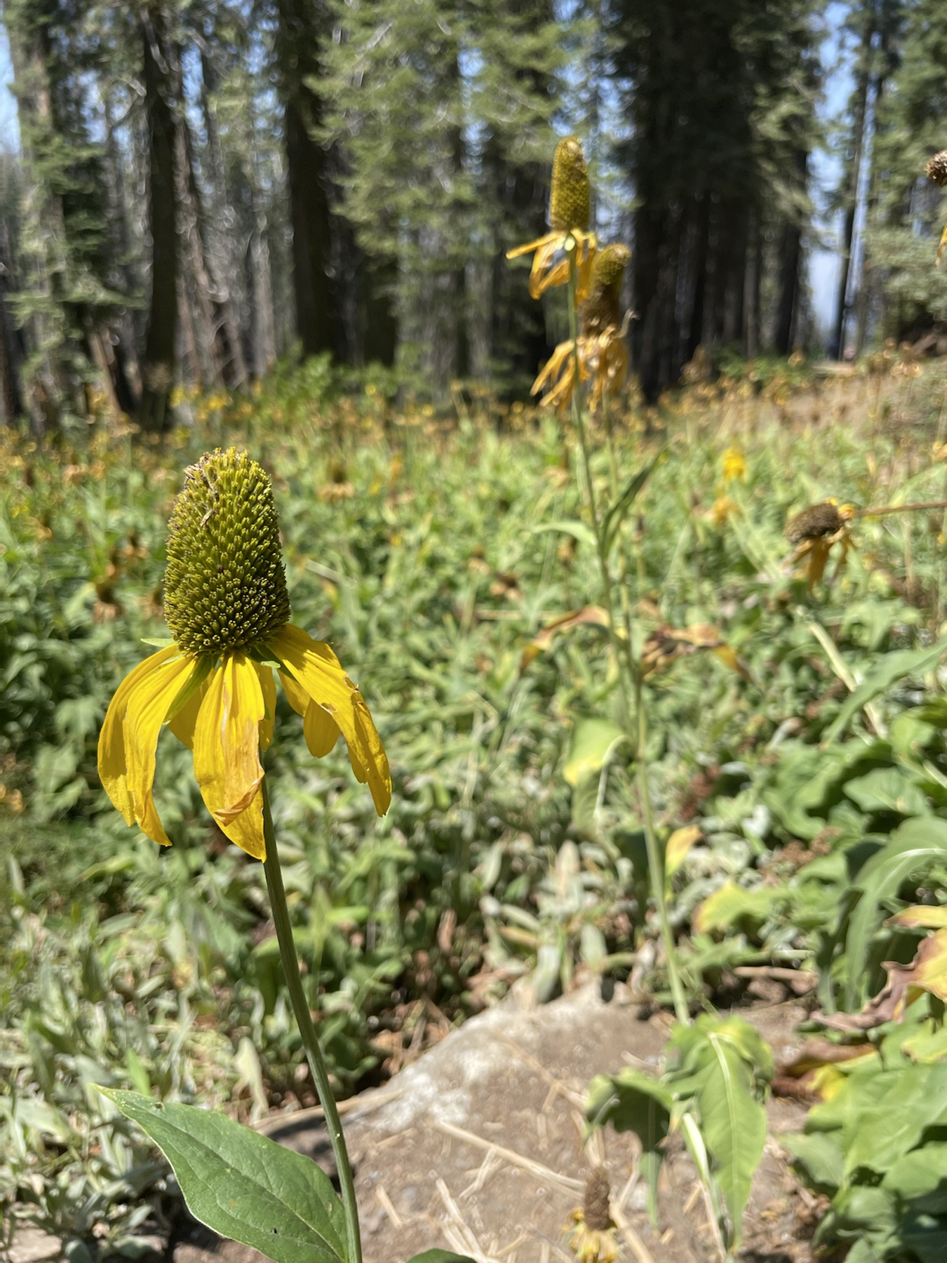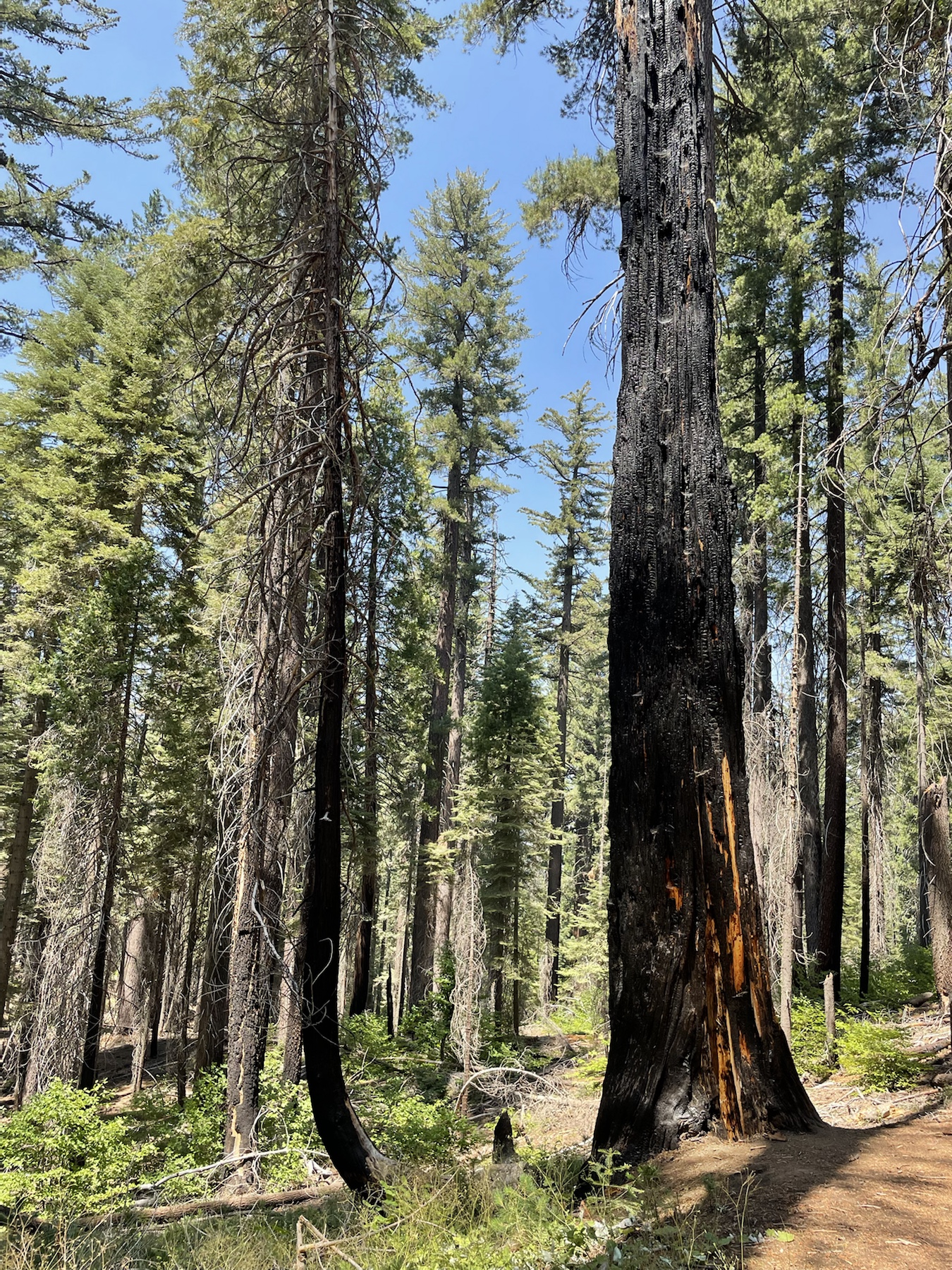 The Tuolumne Grove is about a one mile trek downhill, about 500 feet of elevation loss. Keep that in mind while walking down. You’ll need water and cool clothing because the heat sneaks up on you down below. The walk down is divine, though; the views of nature and their critters is not to be missed. The sequoias though there are not many, they are worth the hike to see.. even if there is a hike back up that hill to follow. What I am saying is … I had a hard time making it back up with the ease of the hike down the hill. So, just a heads up for those of us not in the best of shape. I made it, but boy did I have to work for it!!