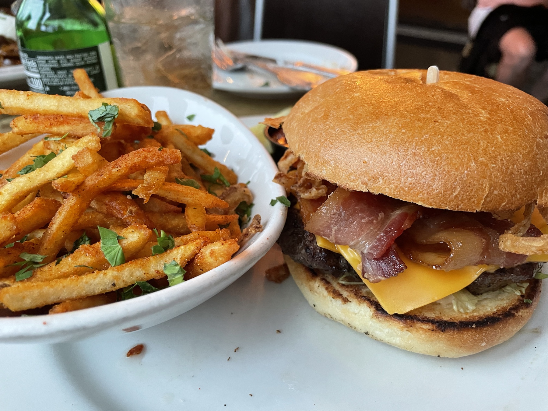 Anyways. We made it and, boy, what a fun place!! We got seated right on the edge of the covered deck overlooking the water. Gah, it was perfect. Drinks were a welcome treat after a day of going full speed all day. We enjoyed a delicious dinner, great views and fun conversation.