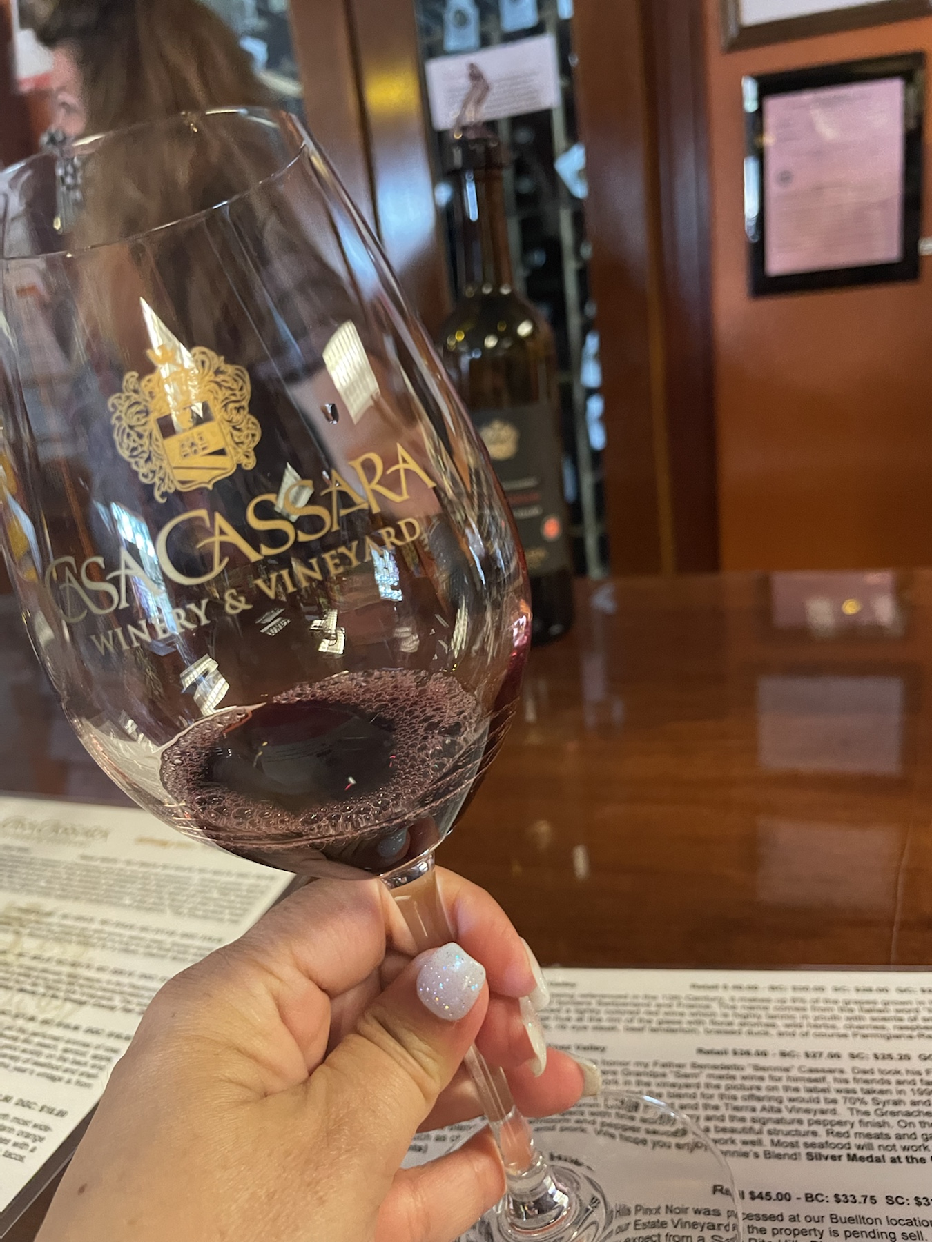 Anyways. We started at Casa Cassara. We tasted fifteen of their wines, their list was huge! We enjoyed each wine, some more than others and we had great conversation with the pourer. So much so that he ended up pouring four additional wines to taste. Then, we enjoyed a full glass of a wine that we both agreed was their best, just as our daughters showed up with their finds to show us. We grabbed that bottle from there then moved onto our next wine tasting.