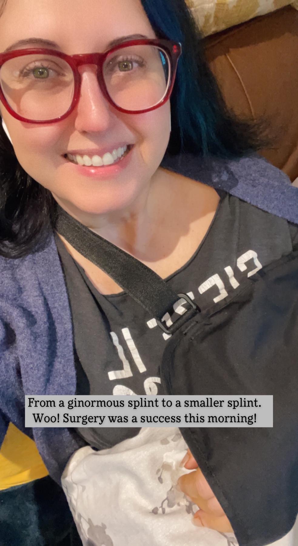 My doctor called this morning to check in with me, all looked great and went well and I’m able to move my fingers. So. Now, I wait for my postop appointment with the doctor next week then jump start physical therapy. So I will try and update everybody then, again. With this broken wrist I really have nothing to talk about because I am off work and I can’t really do much 🙃.