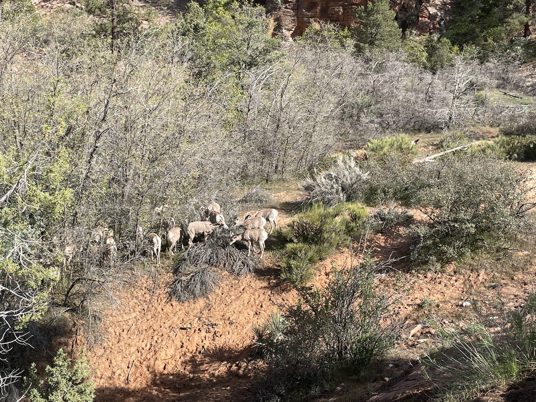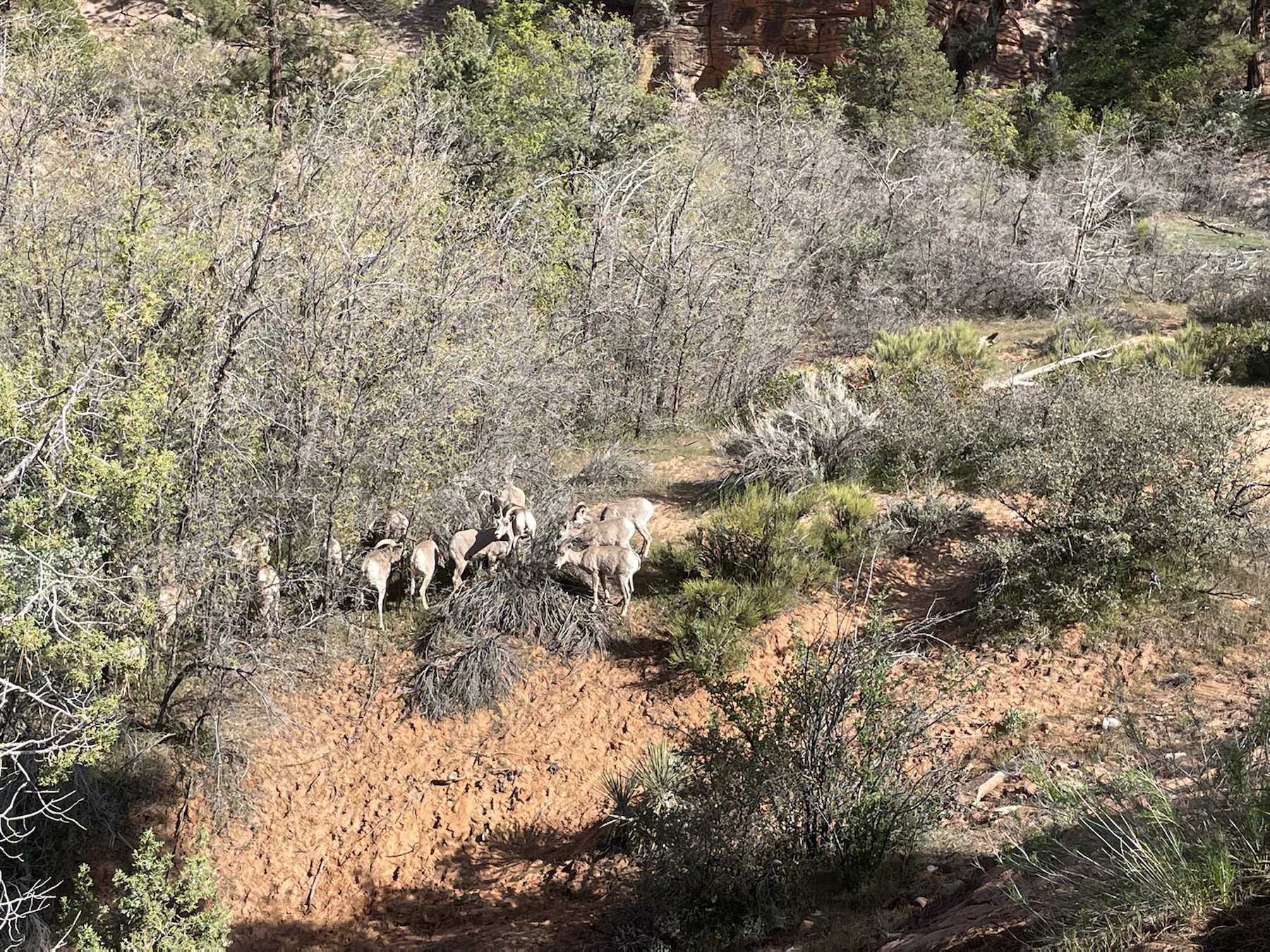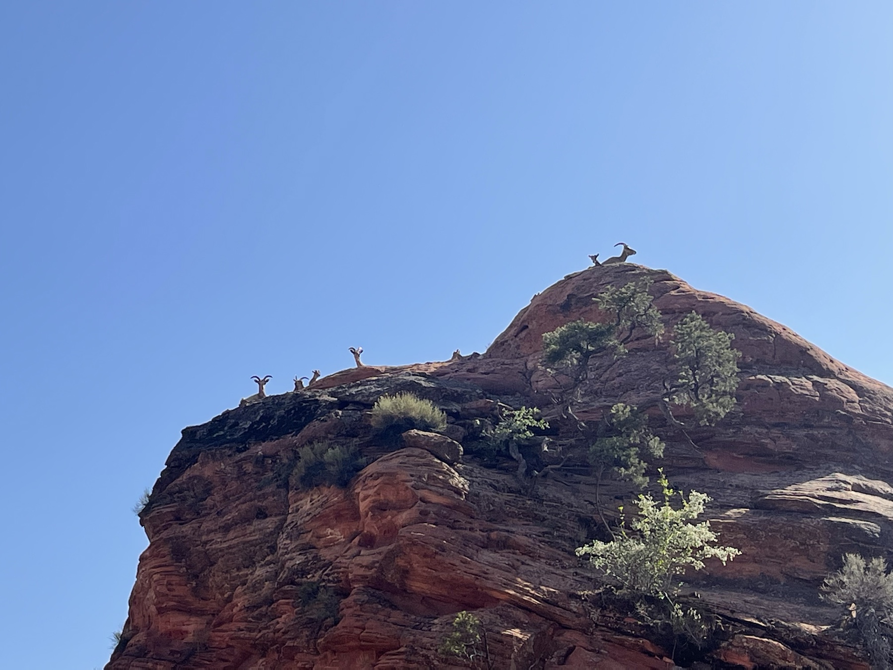 After Bryce Canyon we headed back to Zion to hike a trail before heading to dinner. On our way to park, we saw some wild big horn sheep lounging in the sun on top of rock formations. As we were looking at them, we noticed sheep across the street grazing. It was so cool!