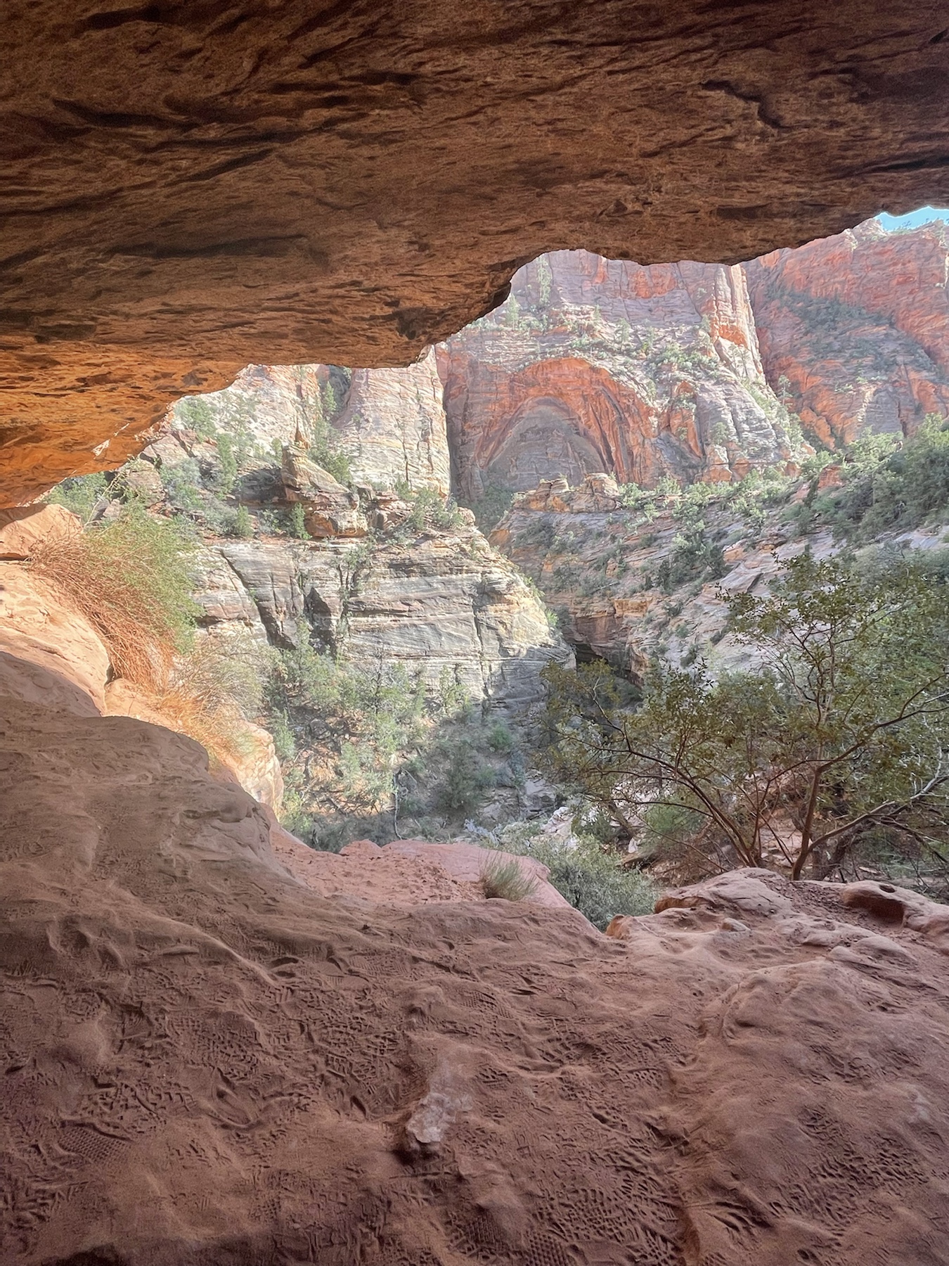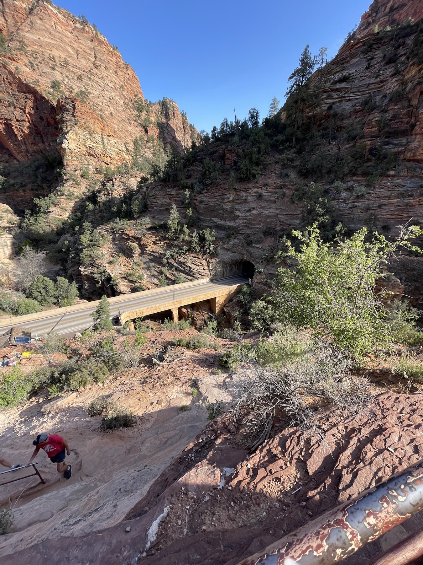 Right before entering the tunnel to travel back through Zion, that is where the Canyon Overlook Trail is located. Sounded innocent enough. But. What my husband didn’t tell me was that the entire trail was not made for someone with broken body parts. 😆