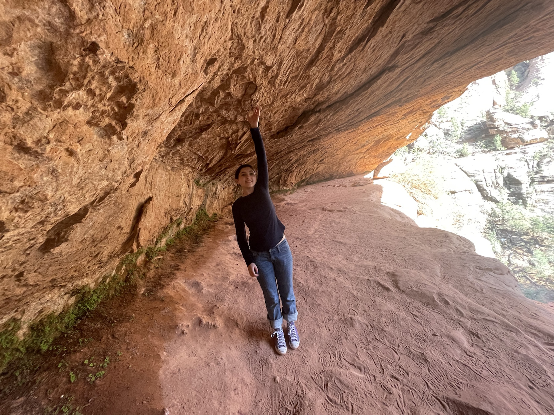 I made it through to the cave pretty easily, just needed an extra eye on my footing, and then stopped. The next part of the hike was without a fence and open to an insane drop. I tried to make it across but it was way too risky for me. The best way for me to describe it is if there was a two foot ledge that had a one foot step below it that overhung a steep drop. (But scarier)