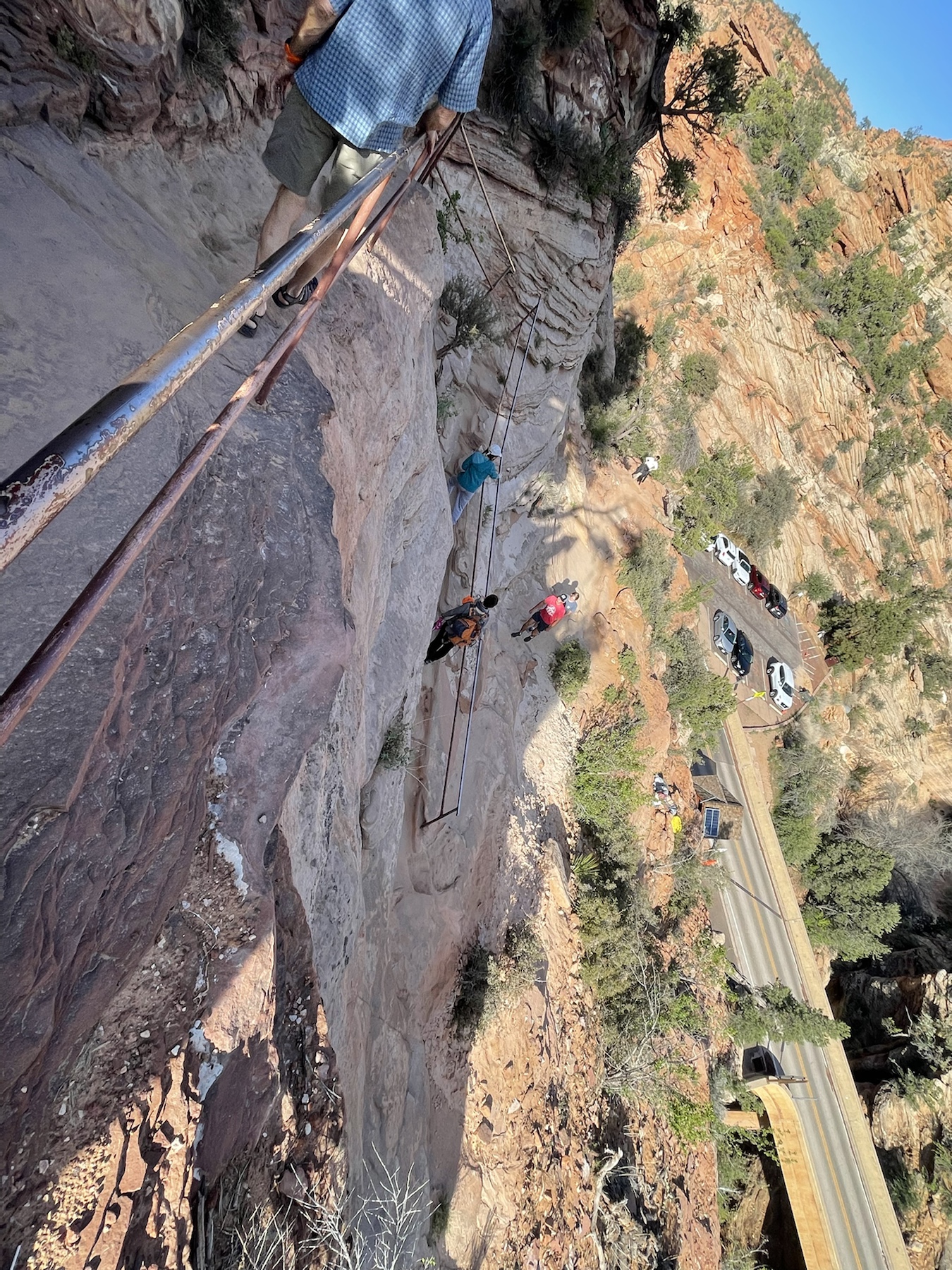 A funny thing that happened on the trail was we were making our way up to the first bend, and we noticed a woman leaning on the side with a bulky cast on. So, I asked her what she broke, if she was OK. Common chitchat. She was much older than us, and she told me how she broke her wrist from a fall. Also how she was not a candidate for surgery, which is why she had on a full cast. I felt bad for her. She continued on to tell us how she couldn’t make it around the bend ahead of her because the trail was unfenced, had no railings and was a foot wide. So I got real nervous.