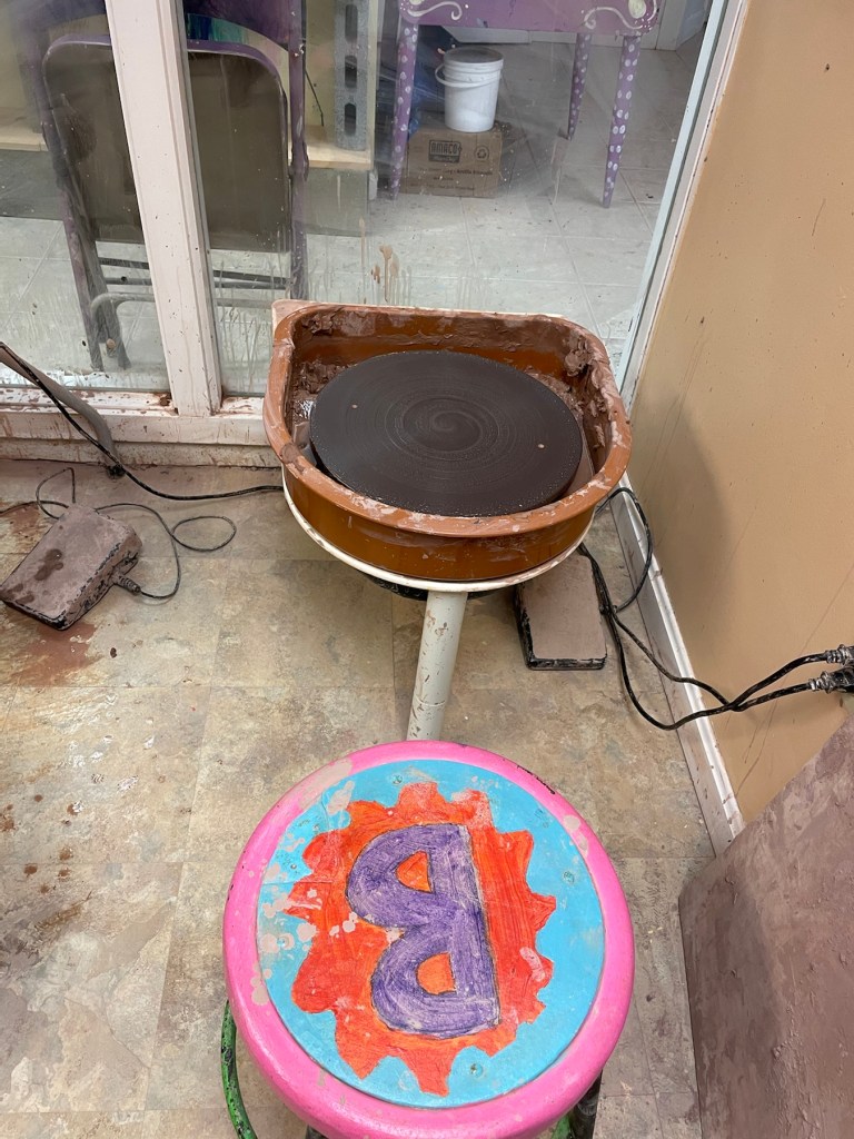 Last night I was determined to have our instructor’s attention on throwing. Luckily, there were a few other people there to use studio time, and the instructor was able to stay in the space to walk us (me) through. Not only did he take my hands and guide them, a la Ghost 😆 , but he sat next to me twice to throw on a wheel to advise me through what he was doing. This one-on-one instruction was key. It made a lot of things that I was doing incorrect clear to understand.