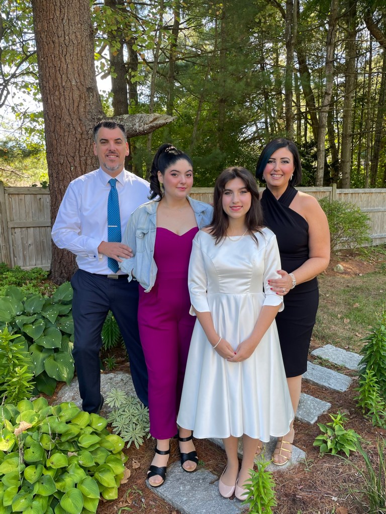 I had our daughter’s sponsor-her oldest and best friend, and, my parents meet at our house. This way we could present her sponsor with a gift, get some pictures in the yard-and my parents could then follow us to the church.