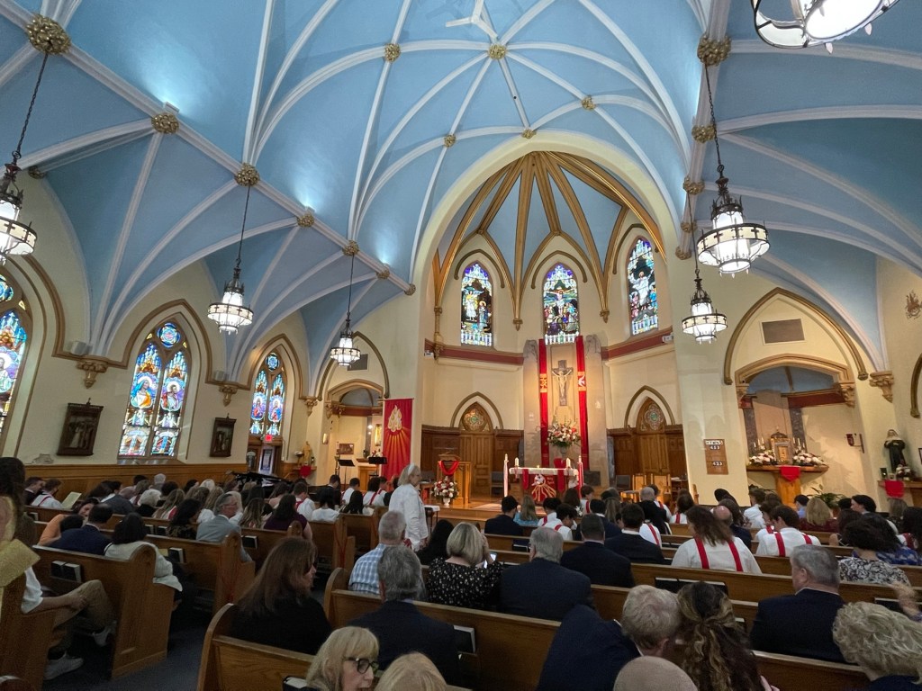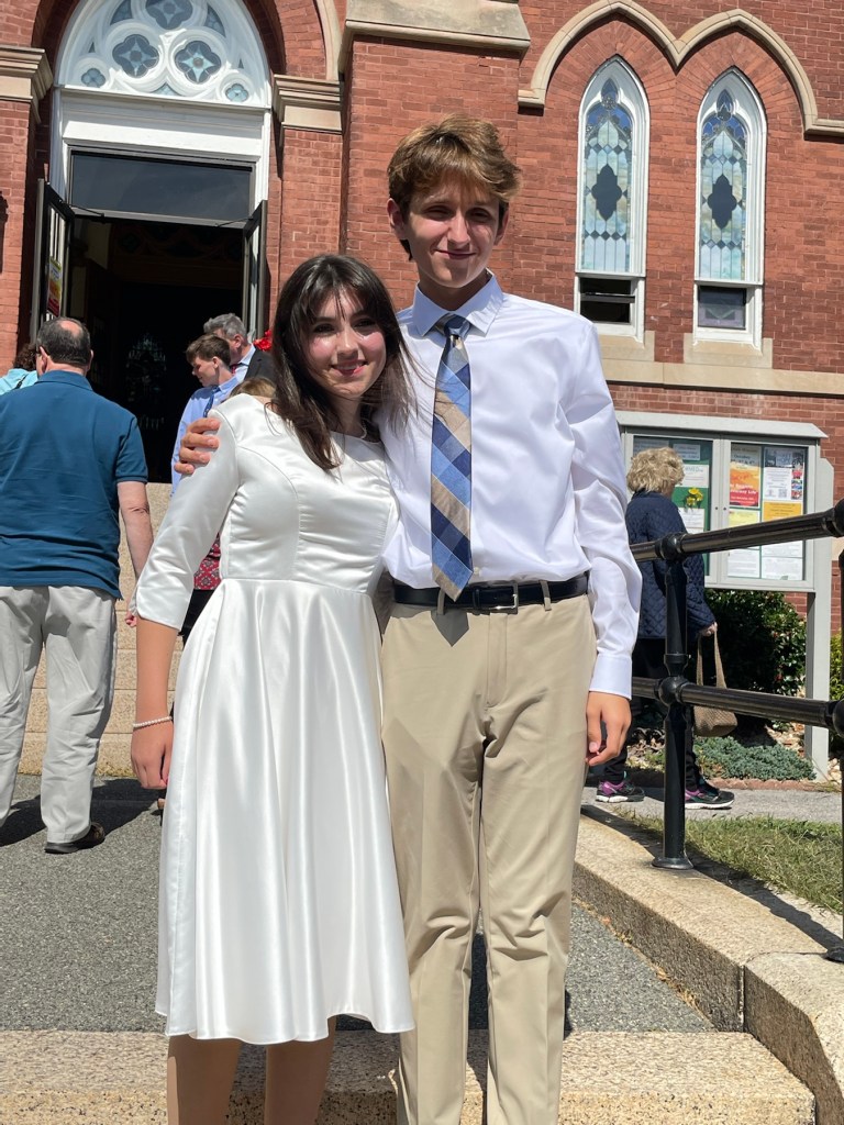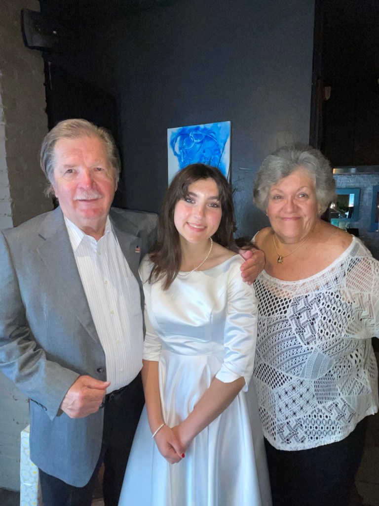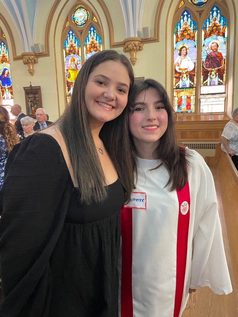 The Bishop’s ceremony and prolific words resonated with me. As he received all of the kids’ letters on their chosen Patron Saint and had one-on-one conversations detailing why these kids chose their sponsors and why they were being confirmed, he found this class had a theme. Their grandparents. He spoke about learning of these beautiful kids and their relationships with their grandparents, or other important figure heads of their families and lives. It hit me hard as I did not grow up with my grandparents. Unfortunately, my grandmothers died before I was born, and I was fortunate to have met my grandfathers when I was 7, during my first trip to Sicily. It was the only time in my life to meet them before they died. With this personal sob story, the Bishop’s words hit me because my kids have been fortunate enough at their ages to have all four of their grandparents in their lives. Highly religious grandparents. It’s something I like to think about often. How wonderful it has been for them to foster these relationships that, to be frank, I can’t relate with.