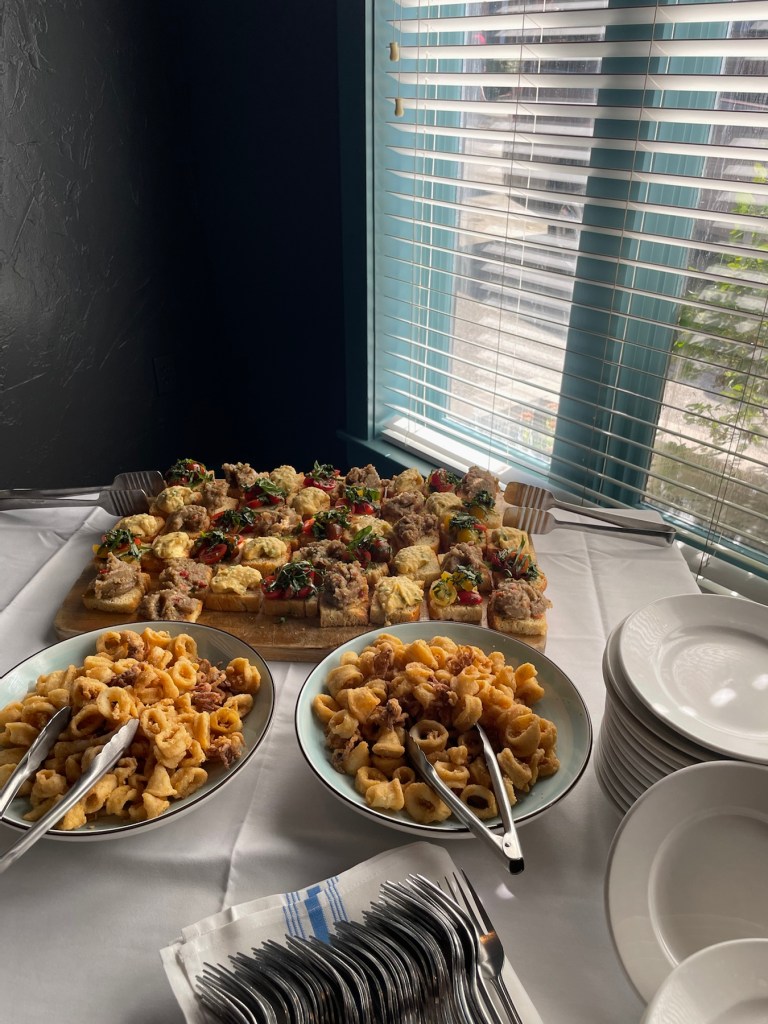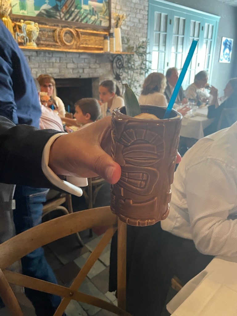 The restaurant was beautiful, matching the theme perfectly. Everyone enjoyed the atmosphere. The drinks and food were fantastic, everyone ate a plenty, and the drinks were a hit. We had a buffet of apps; calamari fritti, three types of bruschetta, and, entrees of chicken marsala, steak and fries, salmon on spinach and chicken fingers. We had personalized cocktails too! See below: