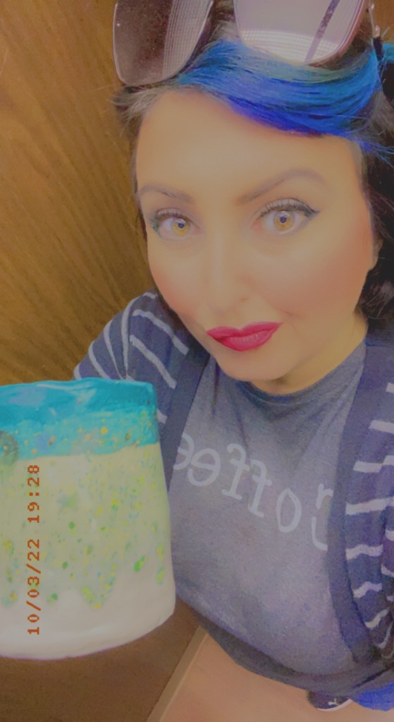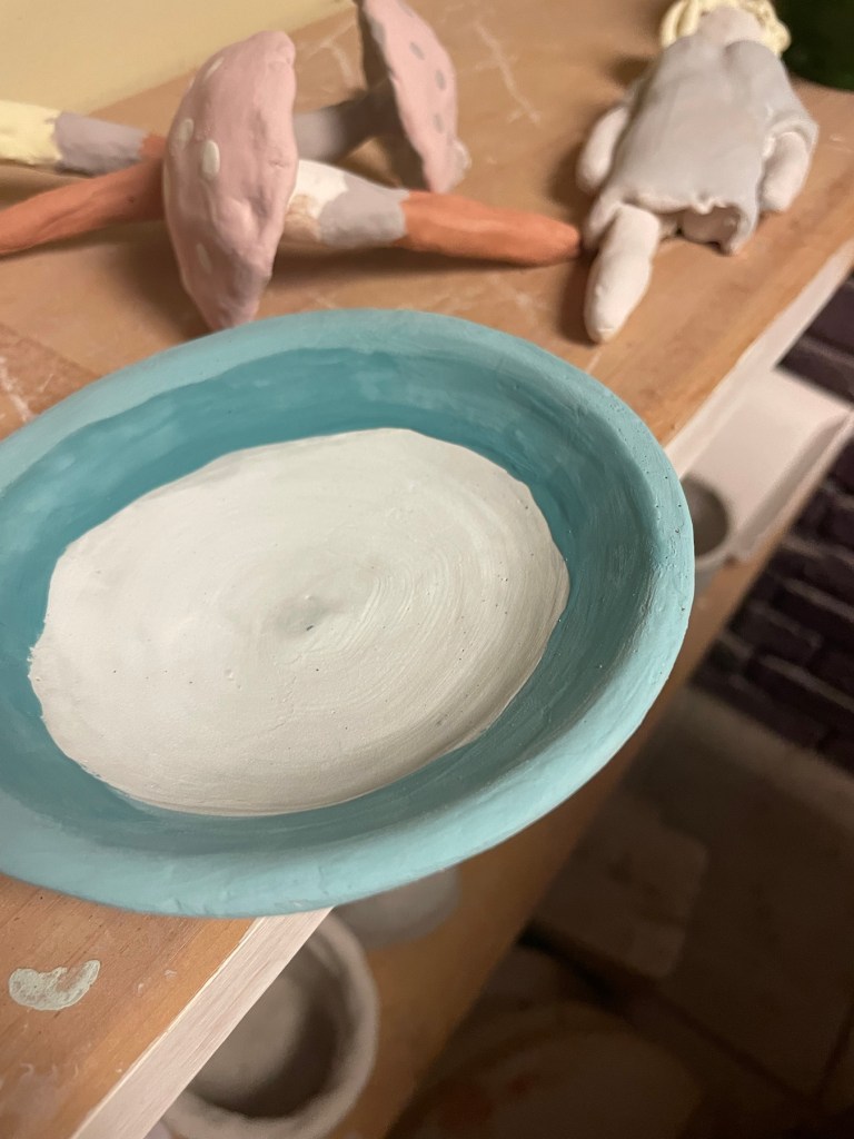 Last night, I glazed the pumpkin in a white day of the dead motif and the two other pieces I sanded smooth, then prepped one with an underglaze and the other I made a mistake and glazed it. Eh oh well -if it works then Im happy. Even if it doesn’t work out, I’m happy.