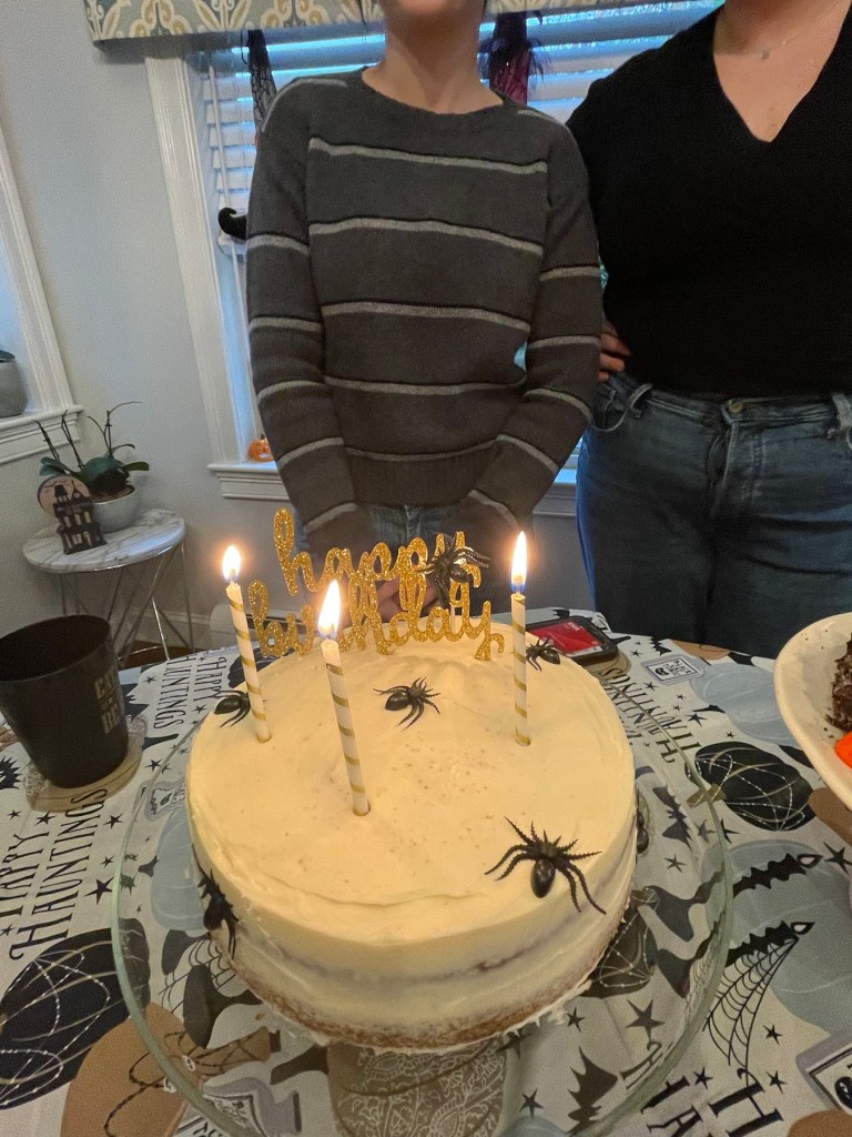 Then this Sunday we threw their family birthday party. The weather didn’t cooperate so we threw it inside. Since my house was already decorated for Halloween, it was easy to match. 😊 spooky themes all around!