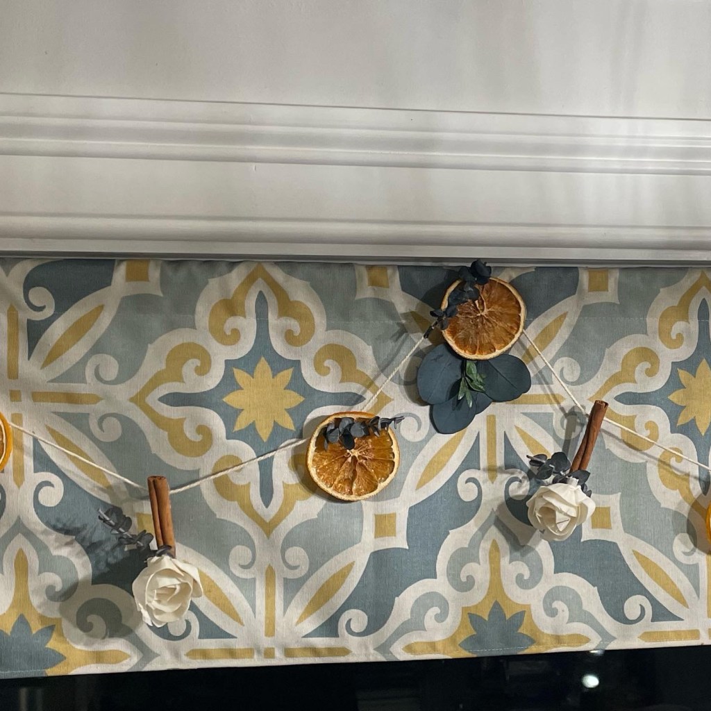 Finally have some down time which feels like the perfect time to post about my finished project. My citrus wreathe and garlands for the kitchen. They came out so cute but for some reason pictures do it zero justice.