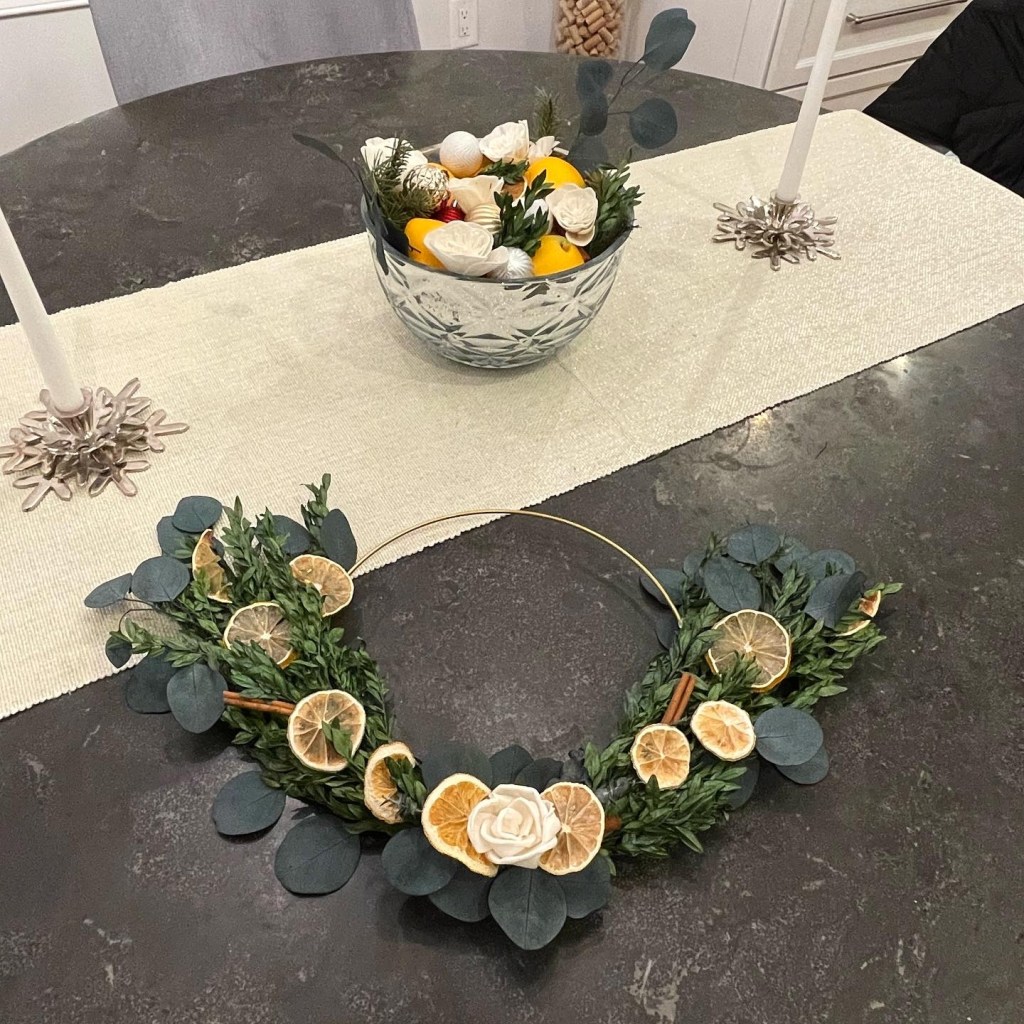 I previously owned the hoop, citrus, flowers, some of the eucalyptus, the jute string, cinnamon sticks, and glue. What do you think?