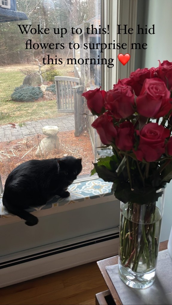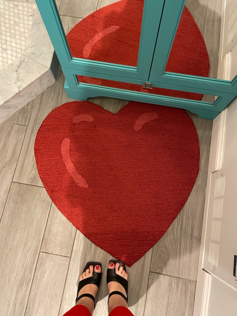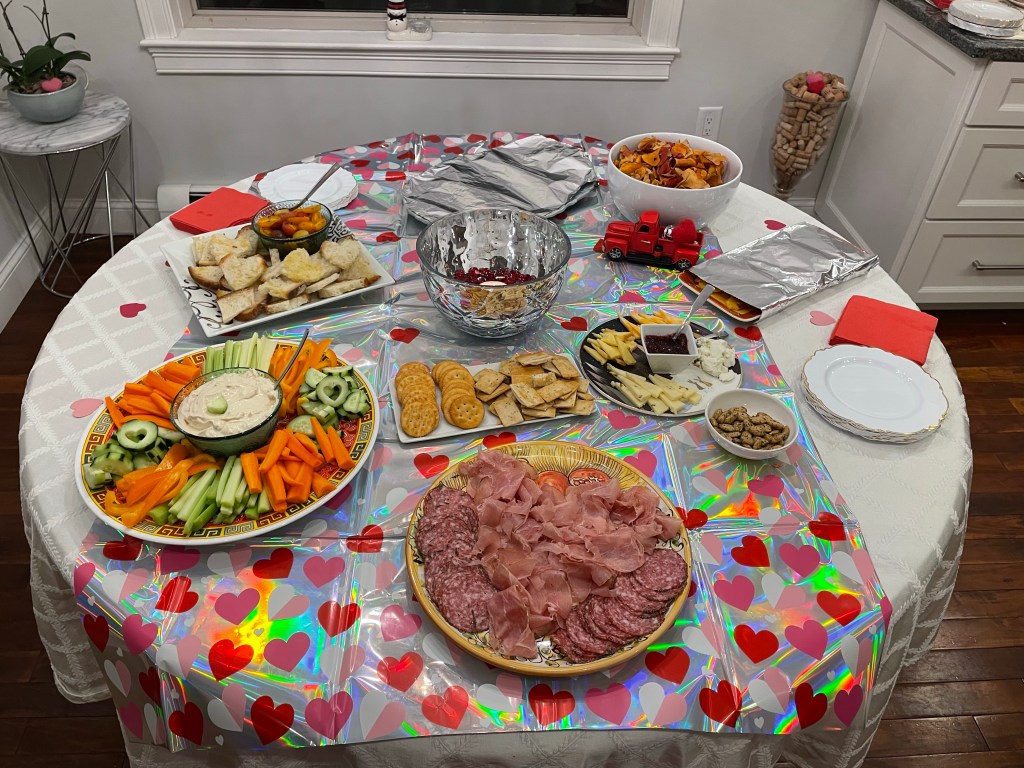 I had to work but opted to work from home so I could get some stuff done. Which was perfect. I did yoga in the early afternoon – while watching the trial!-and I was able to set the kitchen table for a surprise. Since the house was still decked out for the holiday it was super easy to get it done. I love to surprise everyone. The table was set in red, with each place set with chocolates and valentines.