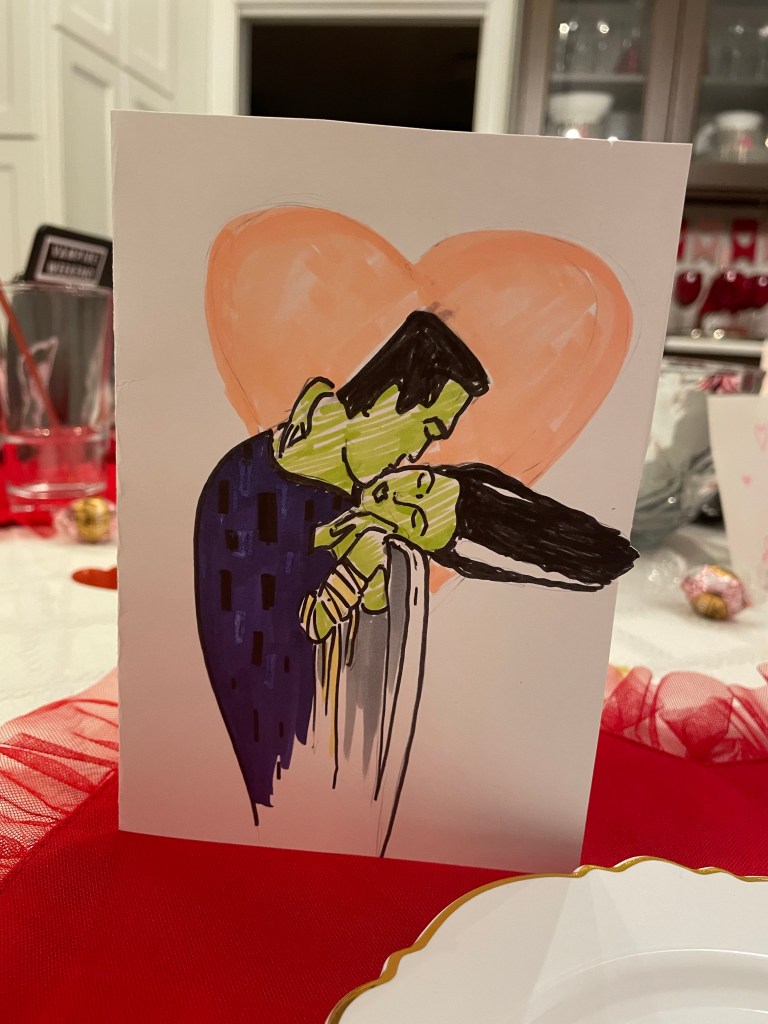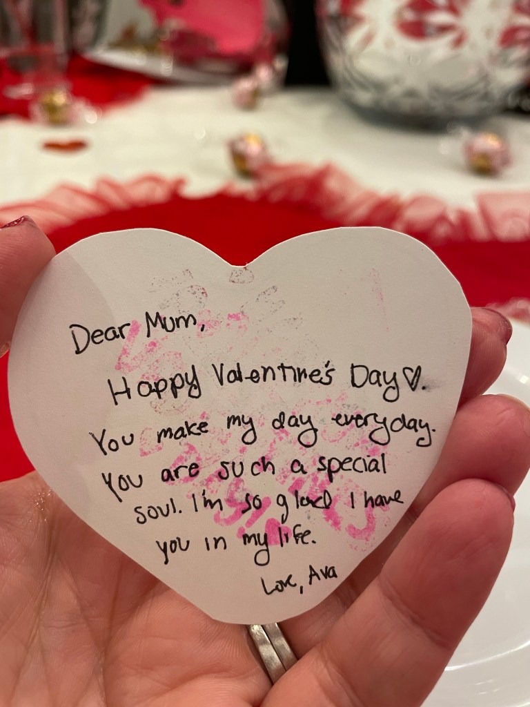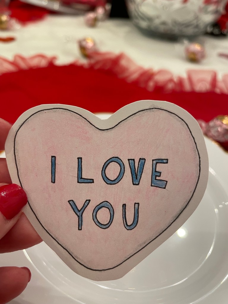 It was pretty and sweet. The girls were so surprised after school and couldn’t wait to share the valentines they made for us.