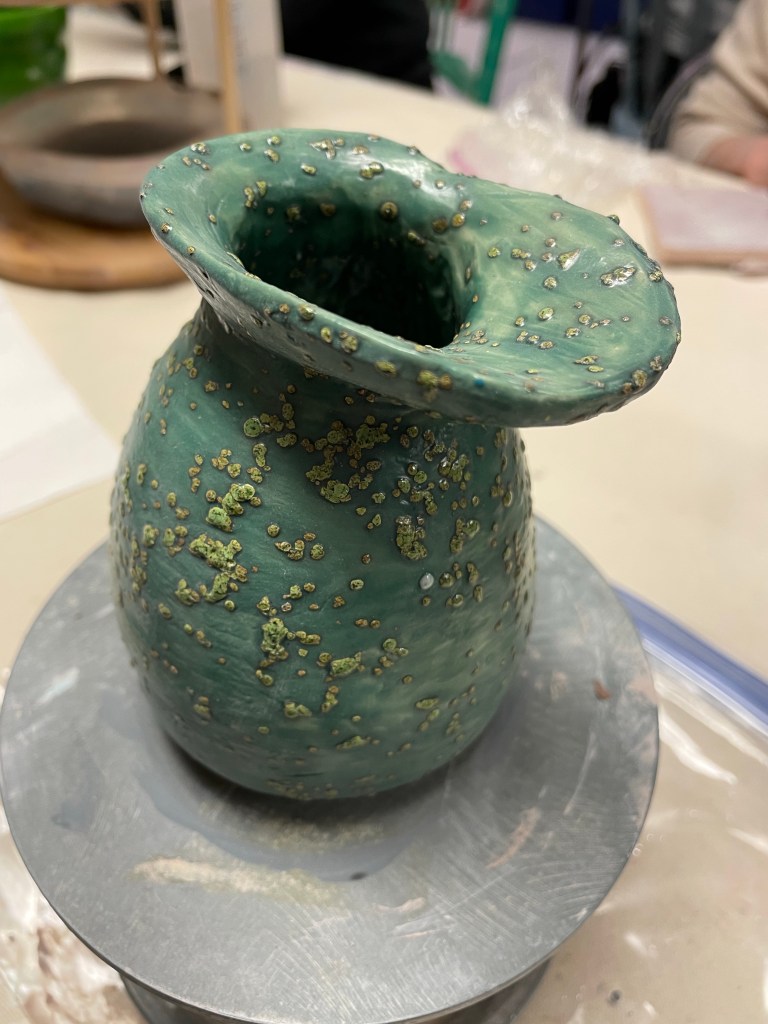 Since then, I’ve continued to explore this wonderful craft, and I’m happy to say that I’ve been making some great progress. I’ve been practicing new techniques, experimenting with different glazes, and honing my skills on the wheel. Even got to try opalescent glaze! It’s been a rewarding experience, and I’m excited to share some of my latest creations with you. In particular, I’m thrilled with a recent chip and dip bowl I made, which turned out to be my first truly pretty-looking piece. The sense of pride and accomplishment I felt when I finished it was indescribable last night.