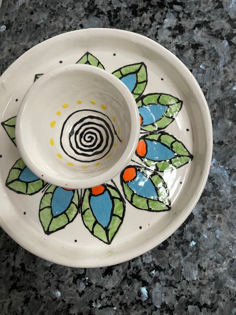 Oh yah, my chip and dip bowl came home last night! What y’all think? My kids loved it, and asked to use it tonight, which was sweet. My husband still hasn’t seen it in person, but he liked it in a picture this morning.