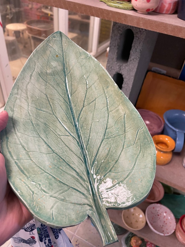 I got to see my leaf and mug! Ohmygod, guys, I am so happy with what I found on the shelf. I don’t know if anyone recalls my last post about making the leaf plate, but holy shit it came out amazing! I know I usually don’t swear, but this definitely is the time to use it because I was just expecting what always happens something is cracked, the color didn’t come out right, or something kooky.. but not today… not this day!!
