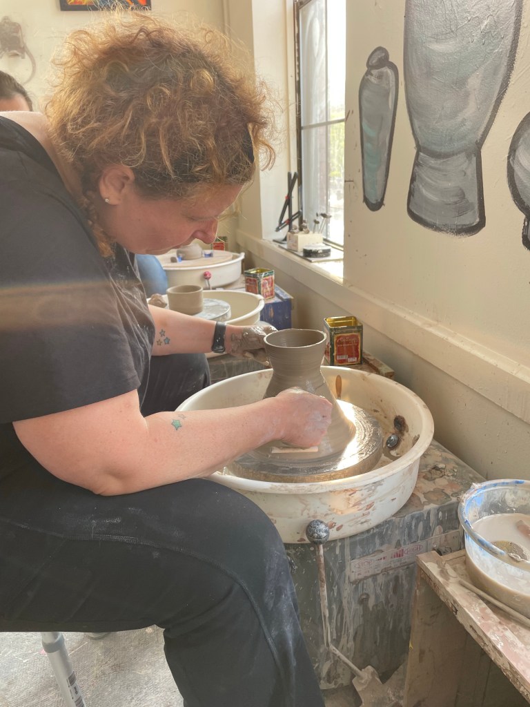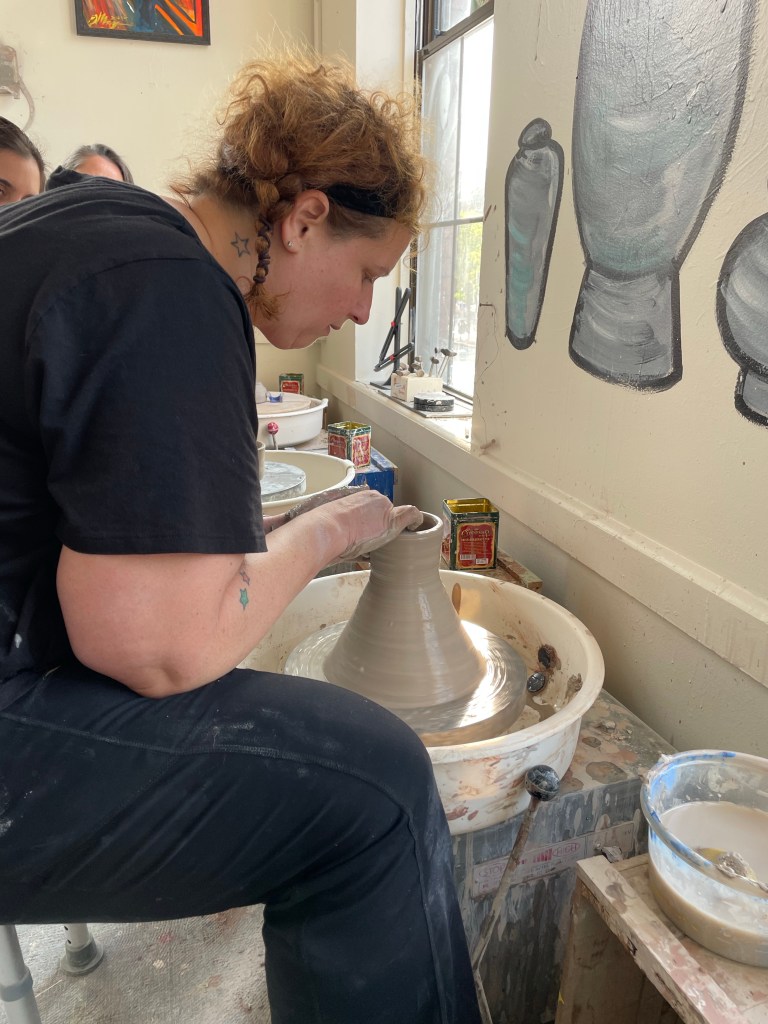 Emily, our class instructor, led the class with warmth and patience, guiding us through the fascinating process of throwing pottery off a clay hump.