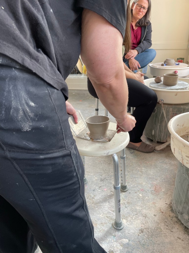I went first in the class, and I was really surprised how much easier this technique was vs my expectations. I created one small bowl then passed the torch. It was so much fun! Then for the rest of the class, I decided to throw off the wheel. I need so much more practice on the wheel, guys, and I never give myself enough opportunity to do so out of fear of failure, and I know I said this before, but I need to just focus on the wheel for this next session. Get over my doubts and just sit with the experience. I really want to be proficient at making at least one thing! Anything!!
