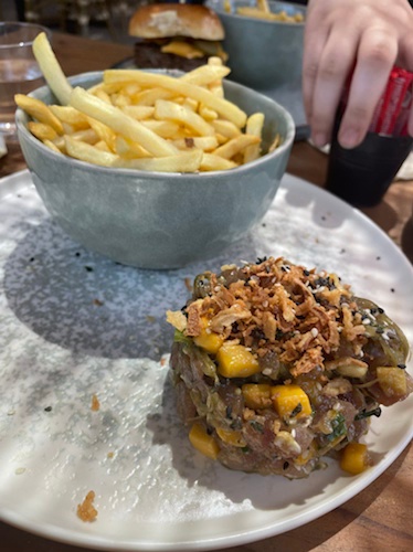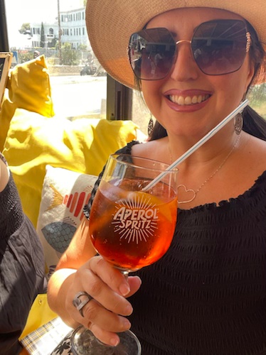 The atmosphere was vibrant and we found a cozy spot at a waterfront restaurant. The only problem was we had to wait for a table. But the gentleman who owned the restaurant was Italian and we ended up talking, he said he liked my face a lot (sure sure) that he didn’t want to see us leave. So what he did for us was he grabbed us Aperol spritzes along a set up with a bottle of local white wine on ice on the bench, facing the harbor, alongside some olives and napkins, with two glasses, and two Orangina’s for the girls, and he let us hang out there until the table is ready. It was a sweet gesture to secure his table haha.