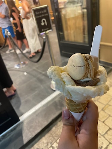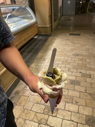 Of course, my husband and children wanted to grab another ice cream to end the night so we took a chance at a different ice cream shop… and everyone said the ice cream the night before shaped like roses was way better. 😂 Of course because it was shaped like roses! Apparently, there is one of those ice cream shops in Boston now, so I think we may have to take a little trip to have some ice cream shaped like roses soon. I think it’s called Amorino.