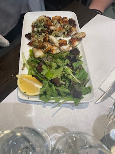 In no time we were seated, and ordered a delicious dinner. Seafood, veal, and so much goodness all accompanied by local wine. It filled our table, and the taste of each dish was amazing.
